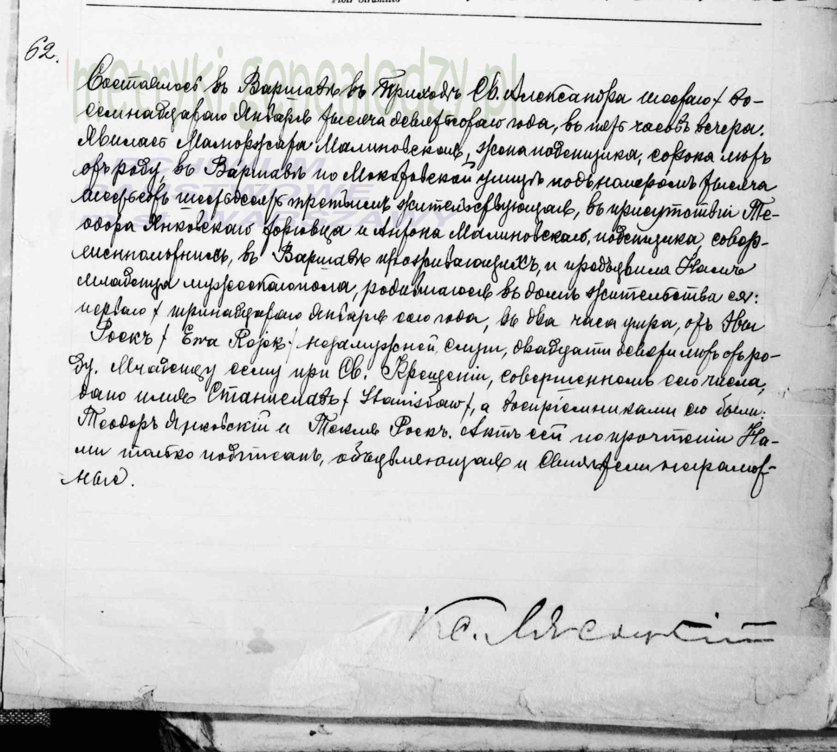 Uprzejmie proszę o przetłumaczenie aktu urodzenia Stanisława Rojka z Warszawy parafia Św. Aleksander z 1900 r.