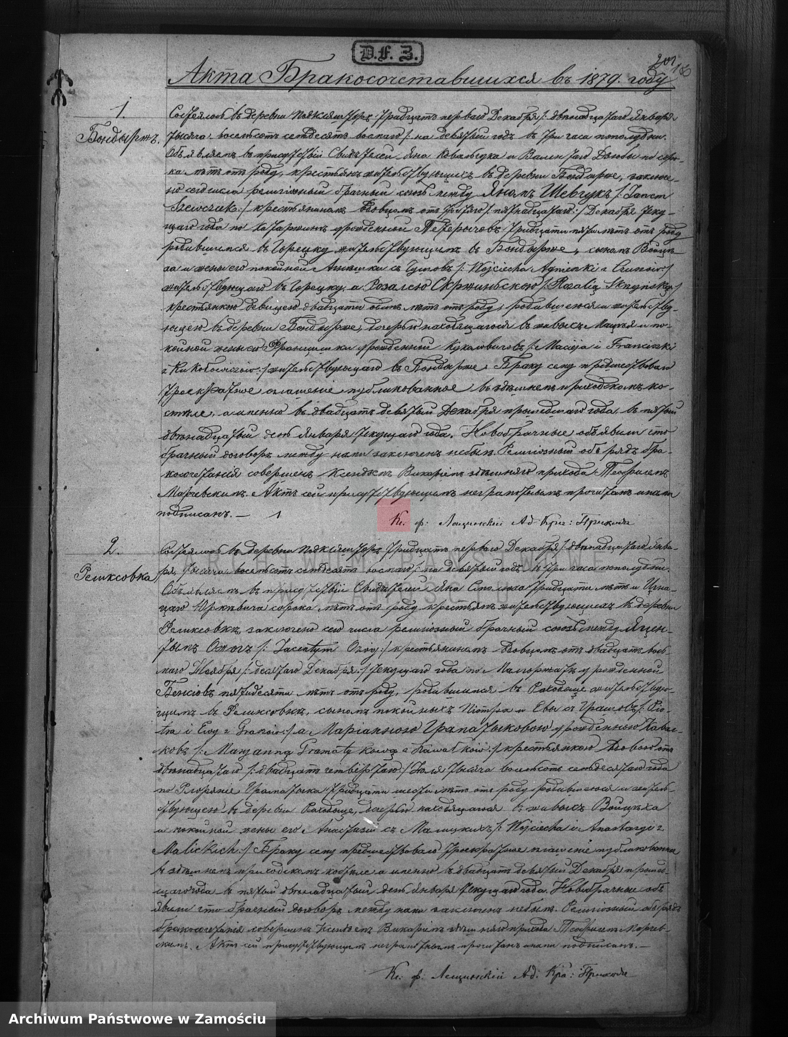 akt nr. 1, rok 1879 par. Krasnobród