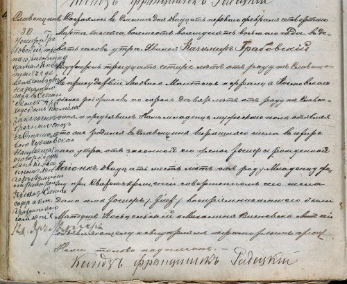Świadkowie: Andrzej Dembiński/Dębiński 60 gospodarz/właścicel domu, Franciszek Szczepański 46 kupiec, obaj zam. w Ślesinie,