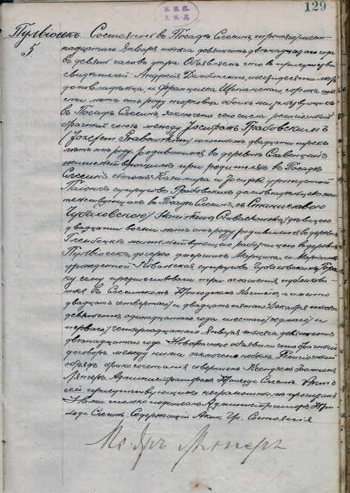 Proszę o pomoc w tłumaczeniu aktu ślubu Grabowski Józef i Stanisława Czubachowska w 1912 roku w Ślesinie.