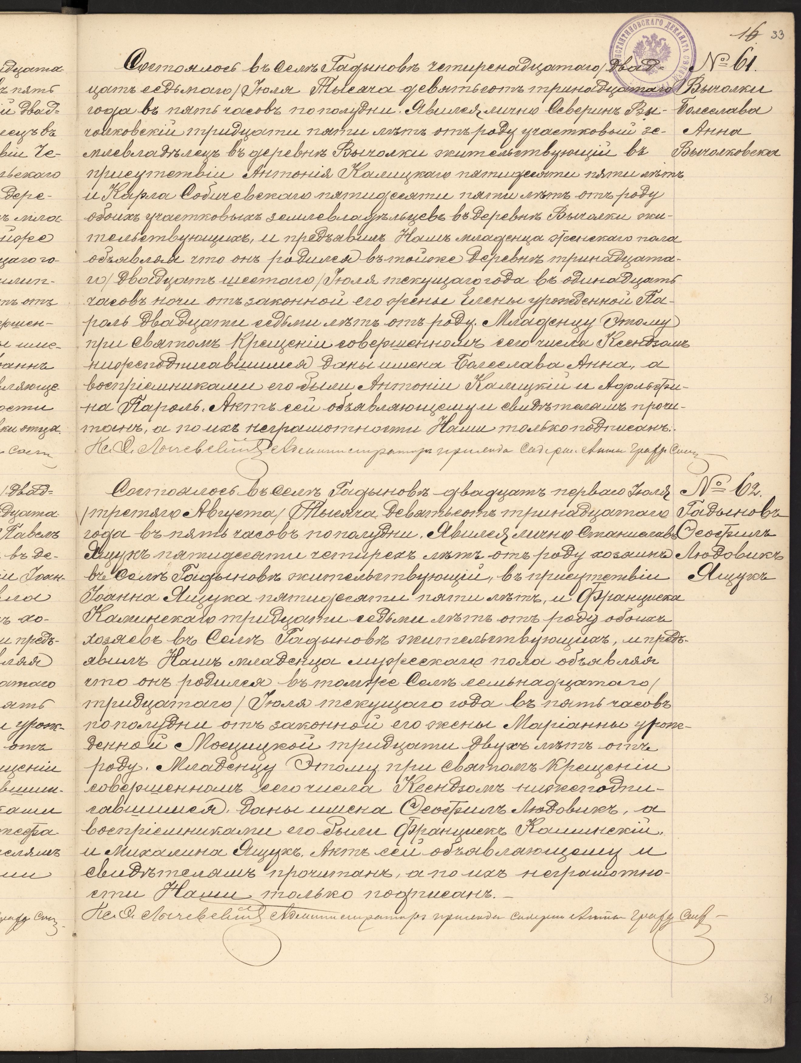 Akt urodzenia, Jaszczuk - Hadynów 1913 ok