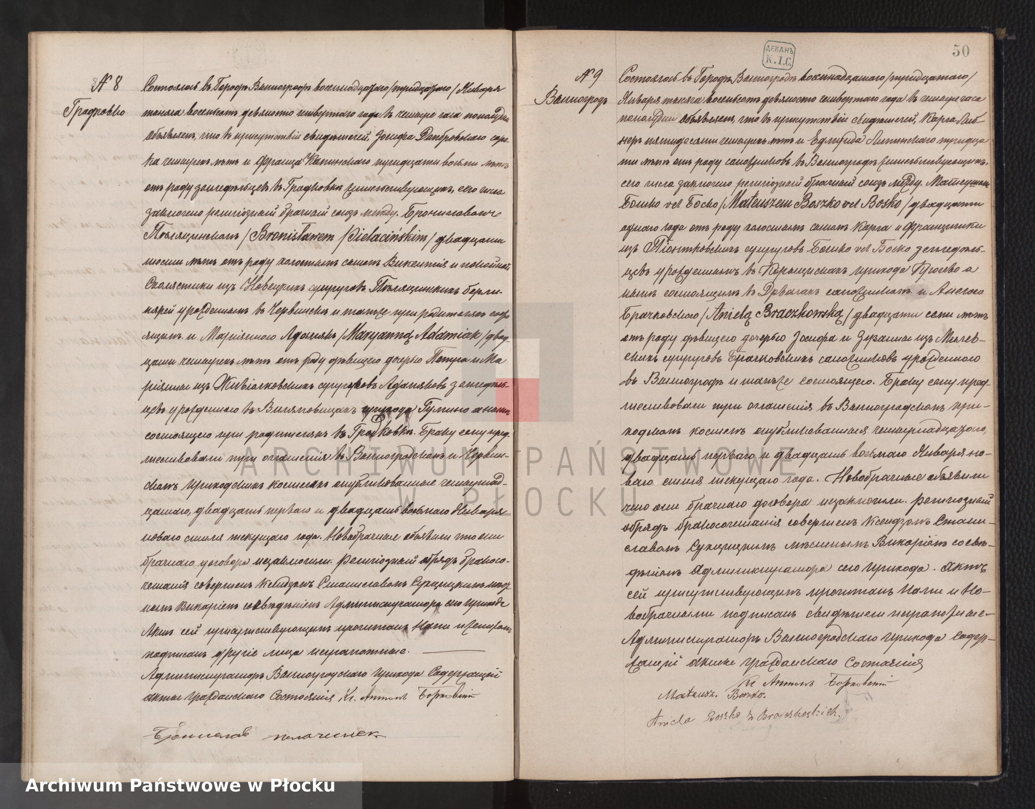 - Temat: Akt ślubu, Boszko - Wyszogród, 1894 ok