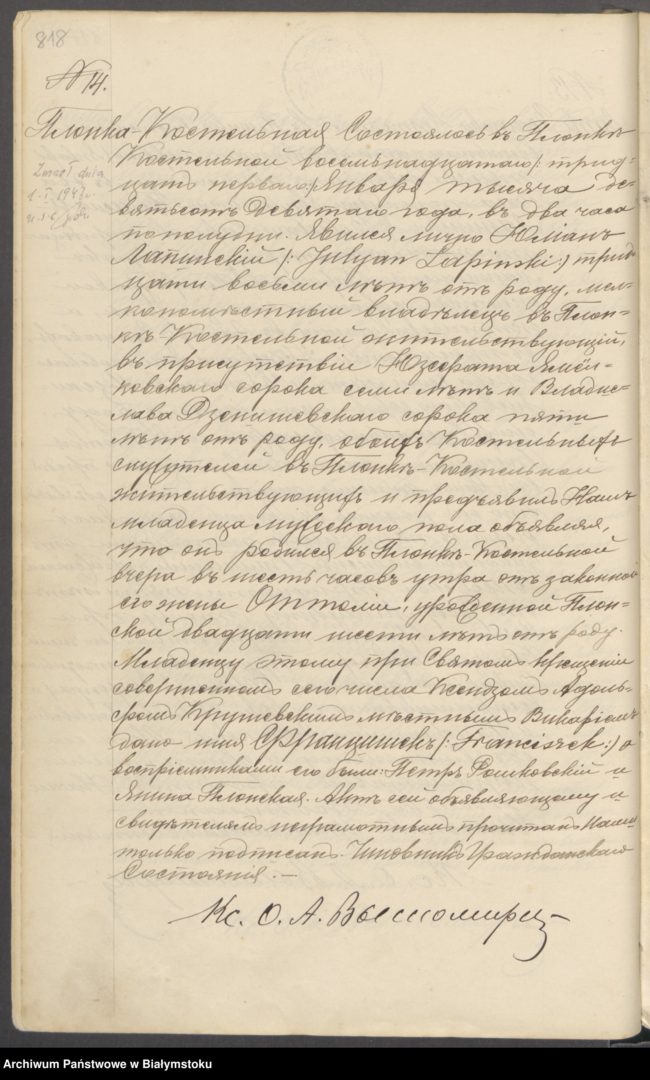 - Temat: Akt urodzenia, Sawicki - Dojlidy 1909