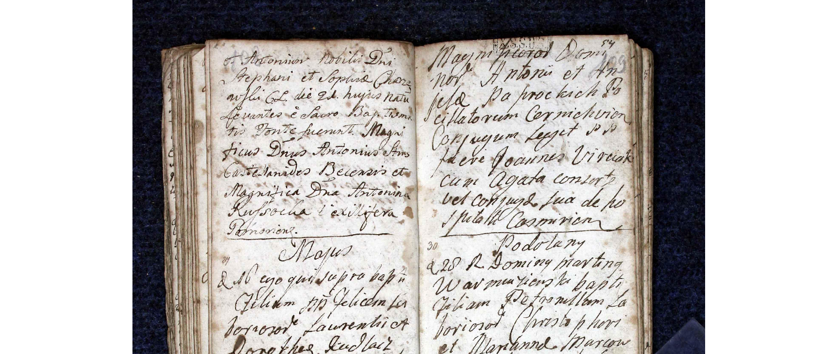Dnia 23 - Ja, jw., ochrzciłem dziecię imieniem Helena Antonina Józefa, córkę wielmożnych państwa Antoniego i Anieli Paprockich, podczaszych czernihowskich, ślubnych małżonków; chrzestnymi byli: Jan Wirciak z Agatą, żoną czyli małżonką swoją, ze szpitala kazimierskiego.