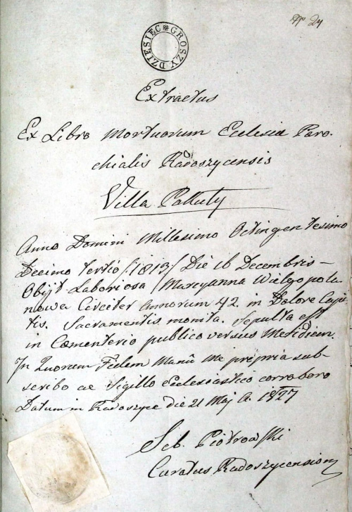 (-) Seb. Piotrowski, proboszcz radoszycki