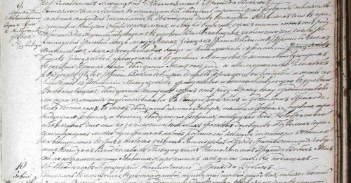Ogłaszamy, że w obecności Wojciecha Obory, lat 40 i Jakuba Stwoczny, lat 46, wieśniaków z Wolwanowic, zawarto w dniu dzisiejszym religijny związek małżeński między Janem Zięciak, wieśniakiem, kawalerem, synem nieznanego ojca i Katarzyny z d. Kasza? Zięciak, urodzonym we wsi Mniszów a żyjącym we wsi Brzesko Stare, lat 20