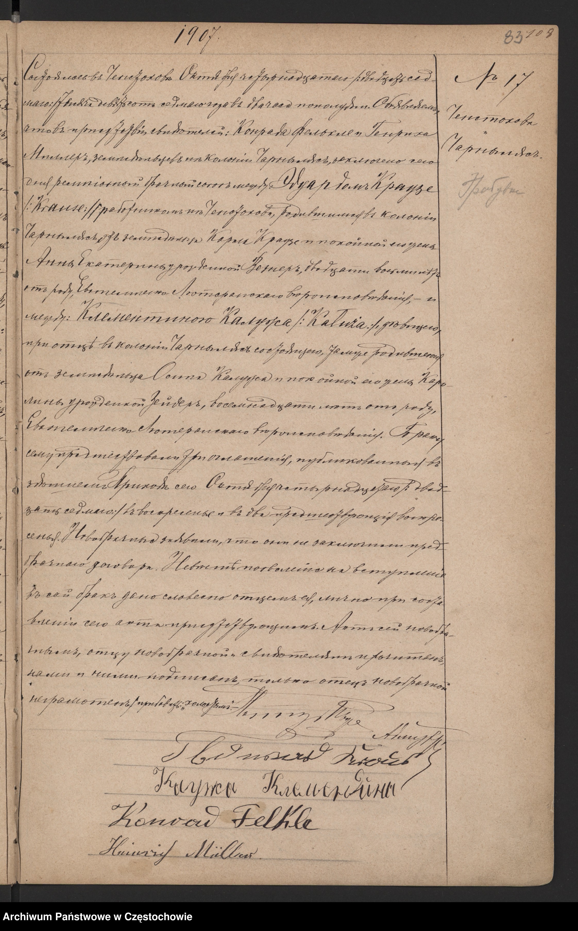 Częstochowa 27/10/1907 o 114:00,