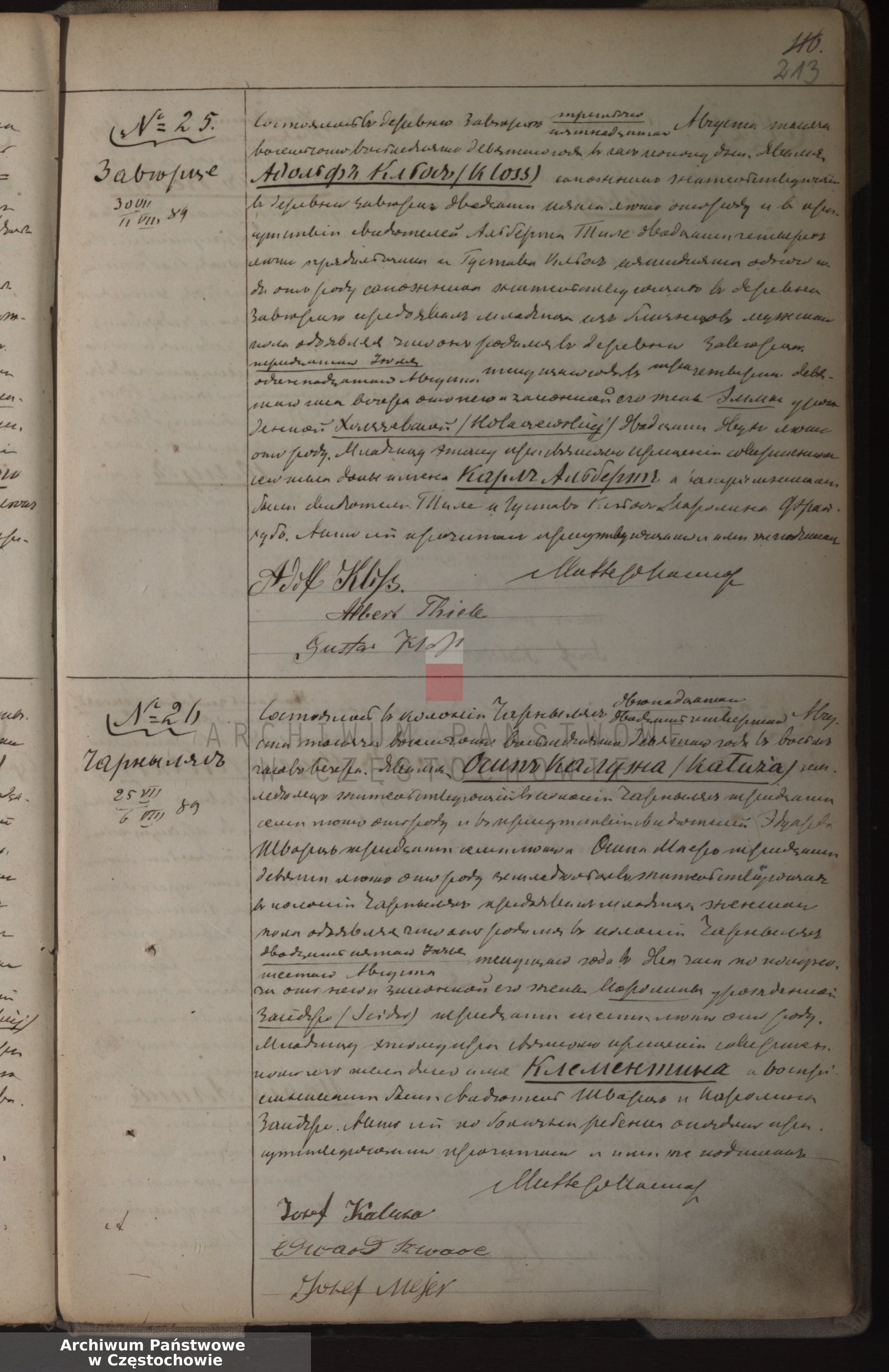 Świadkowie: Edward Szwarc lat 37, Józef Mejer lat 39, rolnicy zam. w Kolonii Czarnylas,