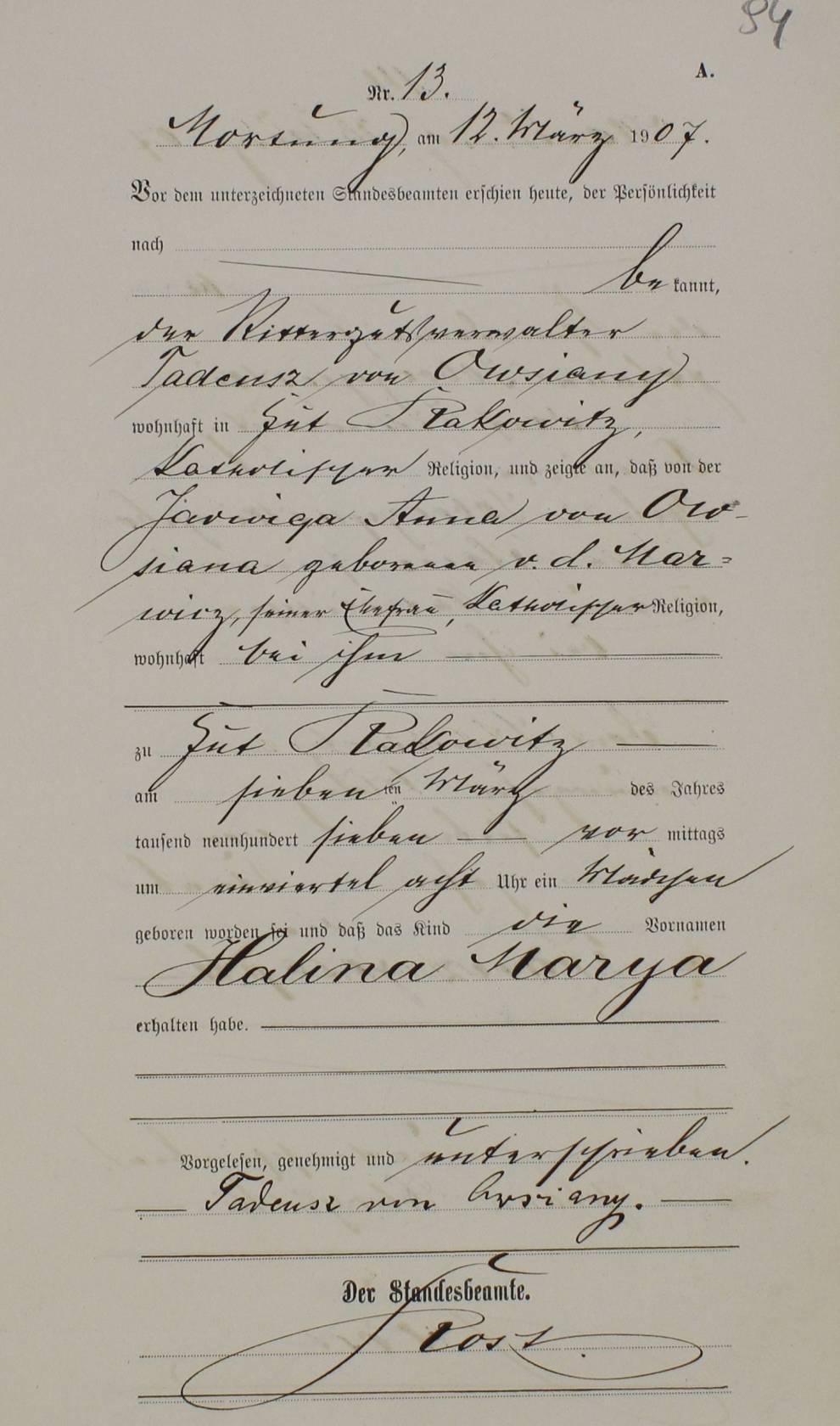 proszę o pomoc w tłumaczeniu aktu urodzenia mojej prababci.