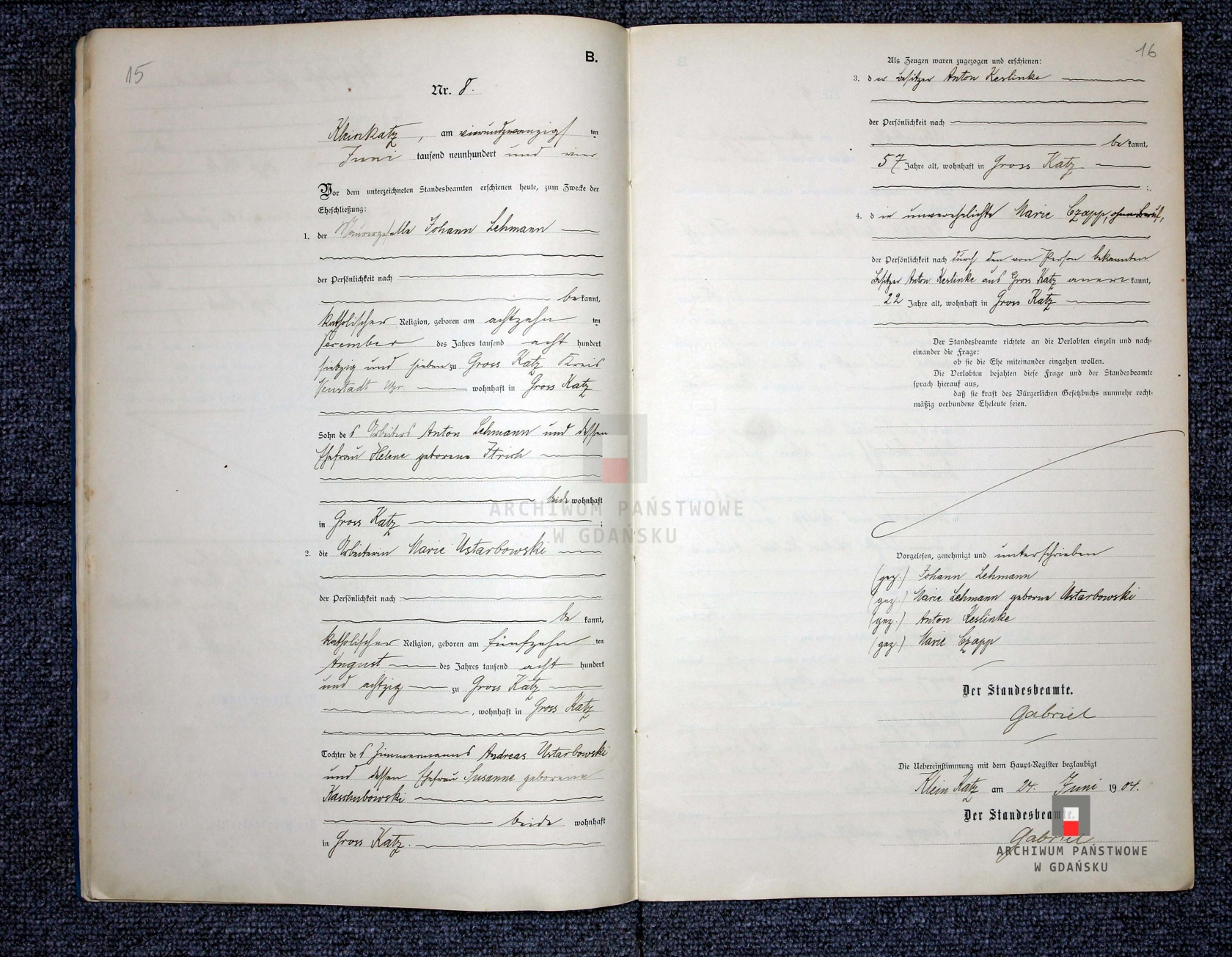 Mały Kack Akt małżeństwa 1904 Lehmann i Ustarbowska OK