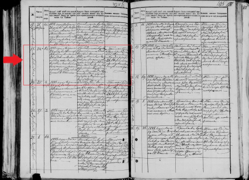 Zwracam się z uprzejmą prośbą o pomoc w pełnym i dokładnym przetłumaczeniu wpisu w księdze metrykalnej Benedyktyny Łaszkiewicz, córki Wincentego i Teresy, zmarłej 24.04.1888 w par. Międzyrzecz k. Wołkowyska