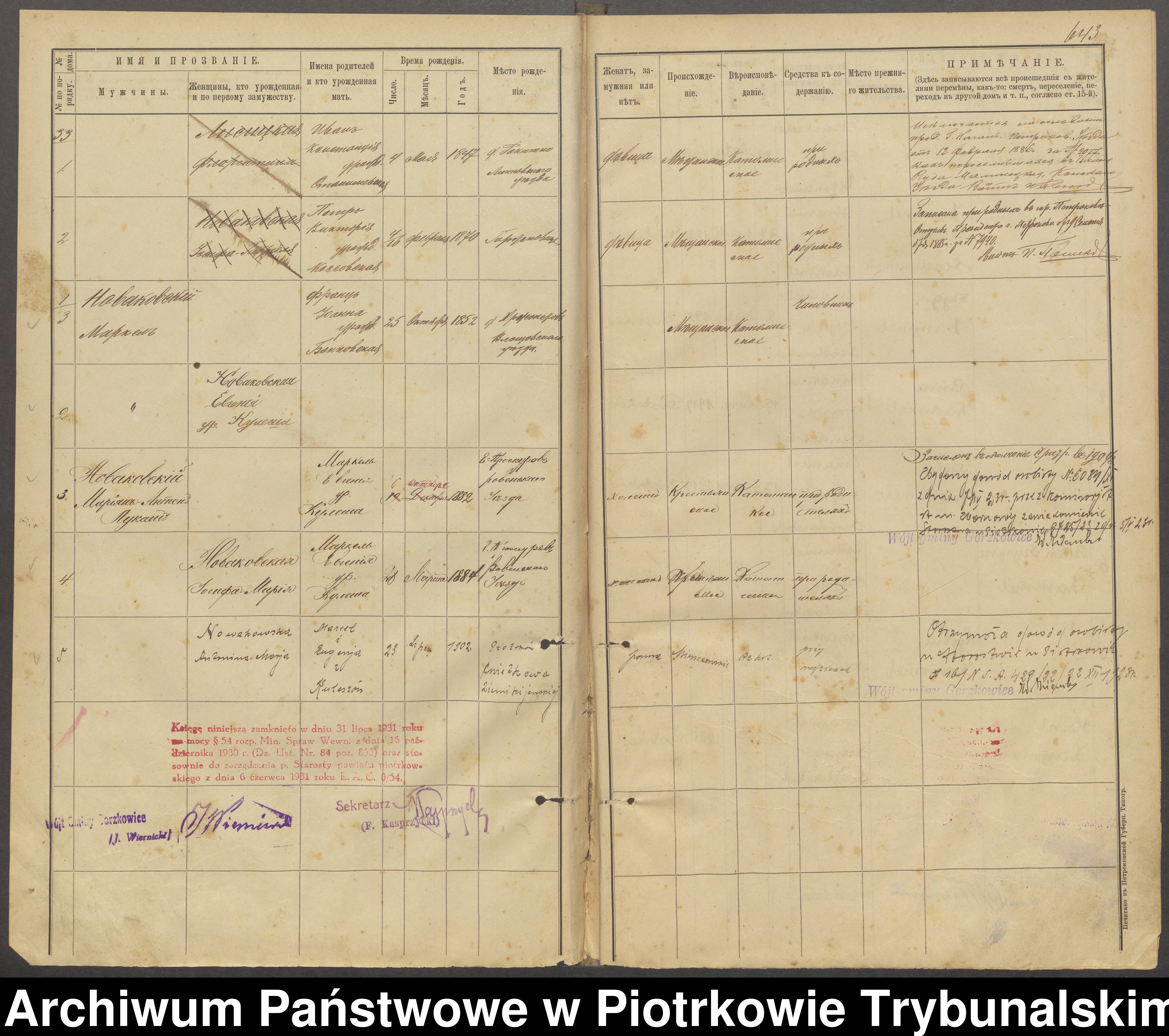 Mam ogromną prośbę o pomoc w tłumaczeniu wpisów w księgach ludności wsi Gorzkowice.