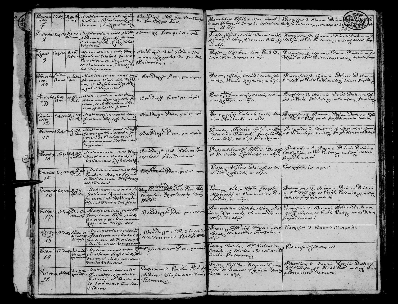 Na samym dole strony (numer 20) znajduje się opis(?) ślubu Wawrzyńca Jakackiego i Barbary Braurskiej zawrty w Pułtusku 3.03.1783. Informacji nie ma wiele, ale może jest tam coś ciekawego... Będę wdzięczny za tłumaczenie.