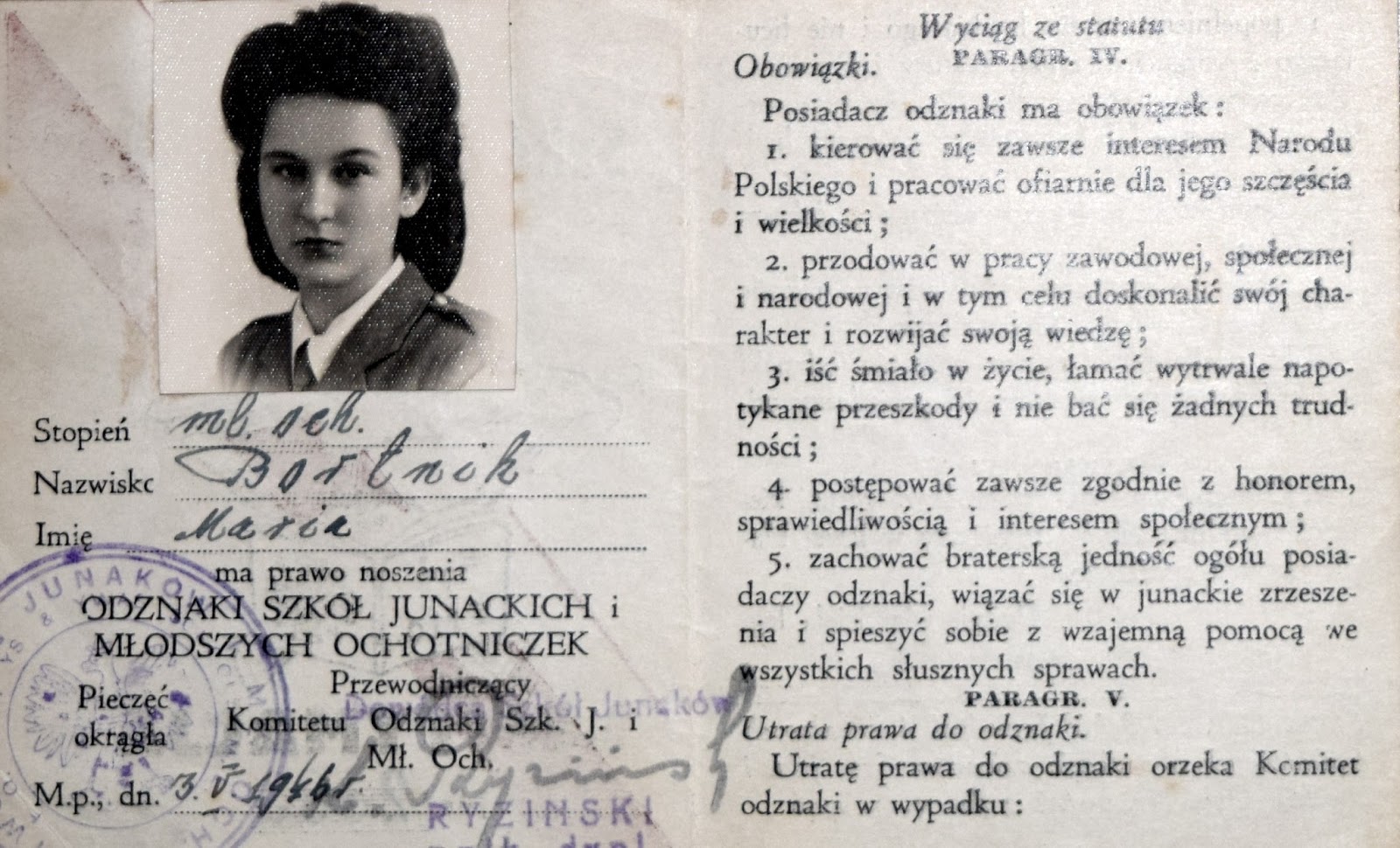 Irku jak to skojarzyłeś? Brawo! Maria Bortnik jest w mundurze PSZ na Zachodzie. Szkoła Junacka i Młodszych Ochotniczek wchodziła w skład szkolnictwa przy 2 Korpusie Polskim.
