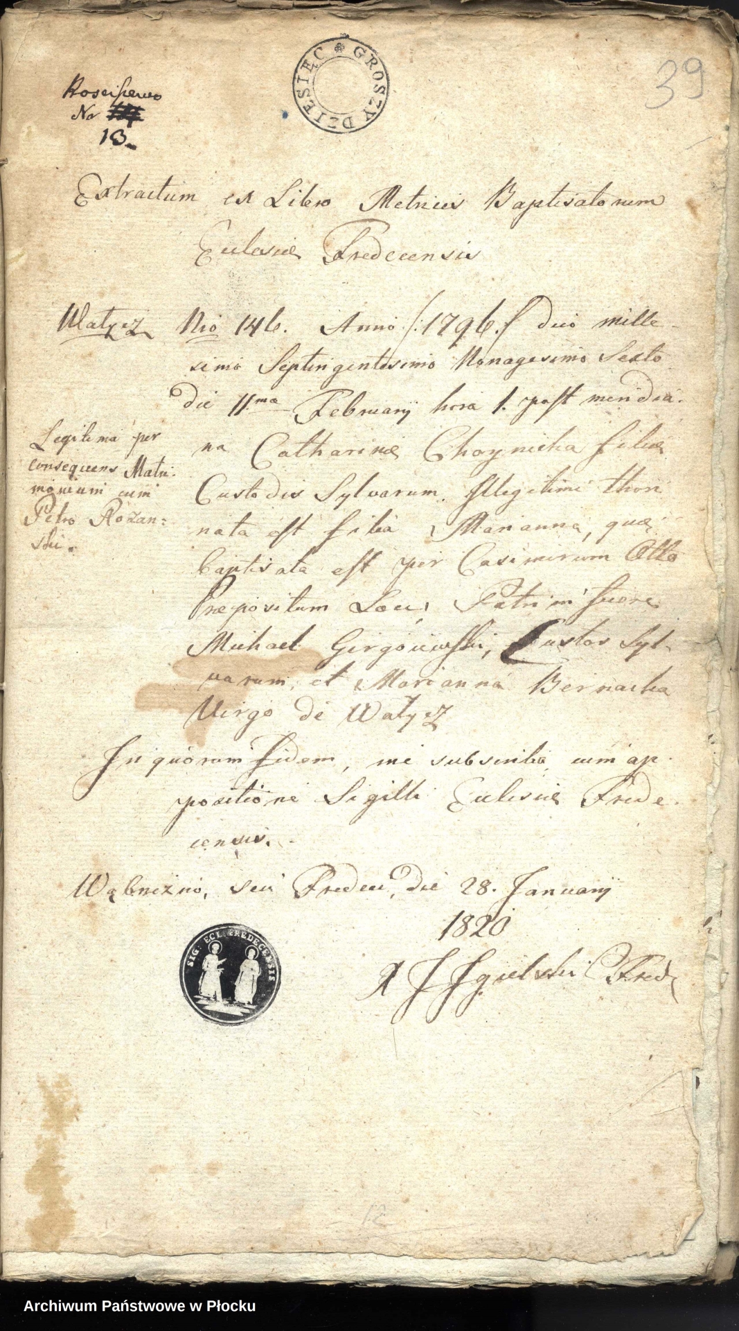 akt urodzenia Katarzyna Chojnacka Wałycz 1796 r.