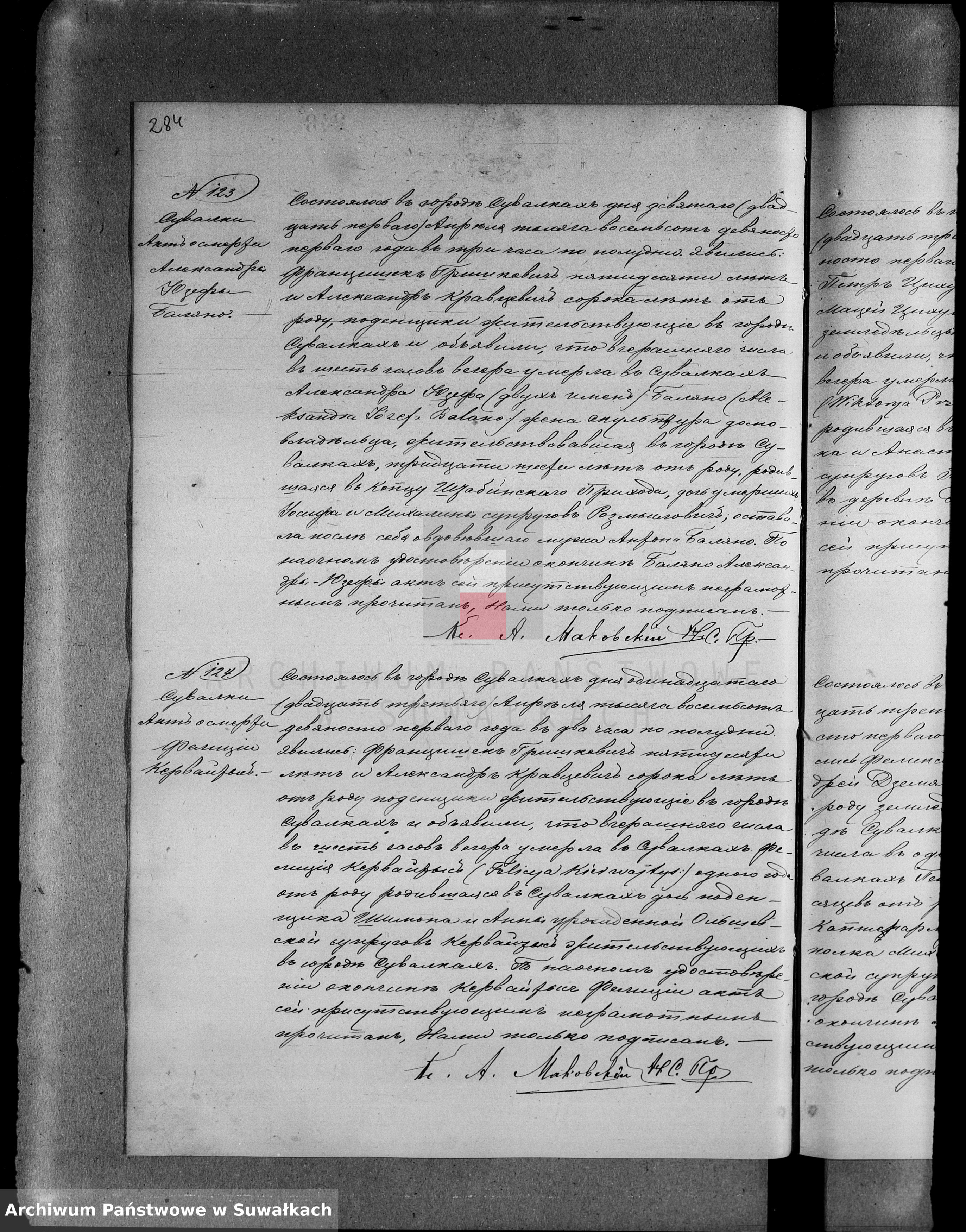 Feliksa umiera 1891r. (akt 124)