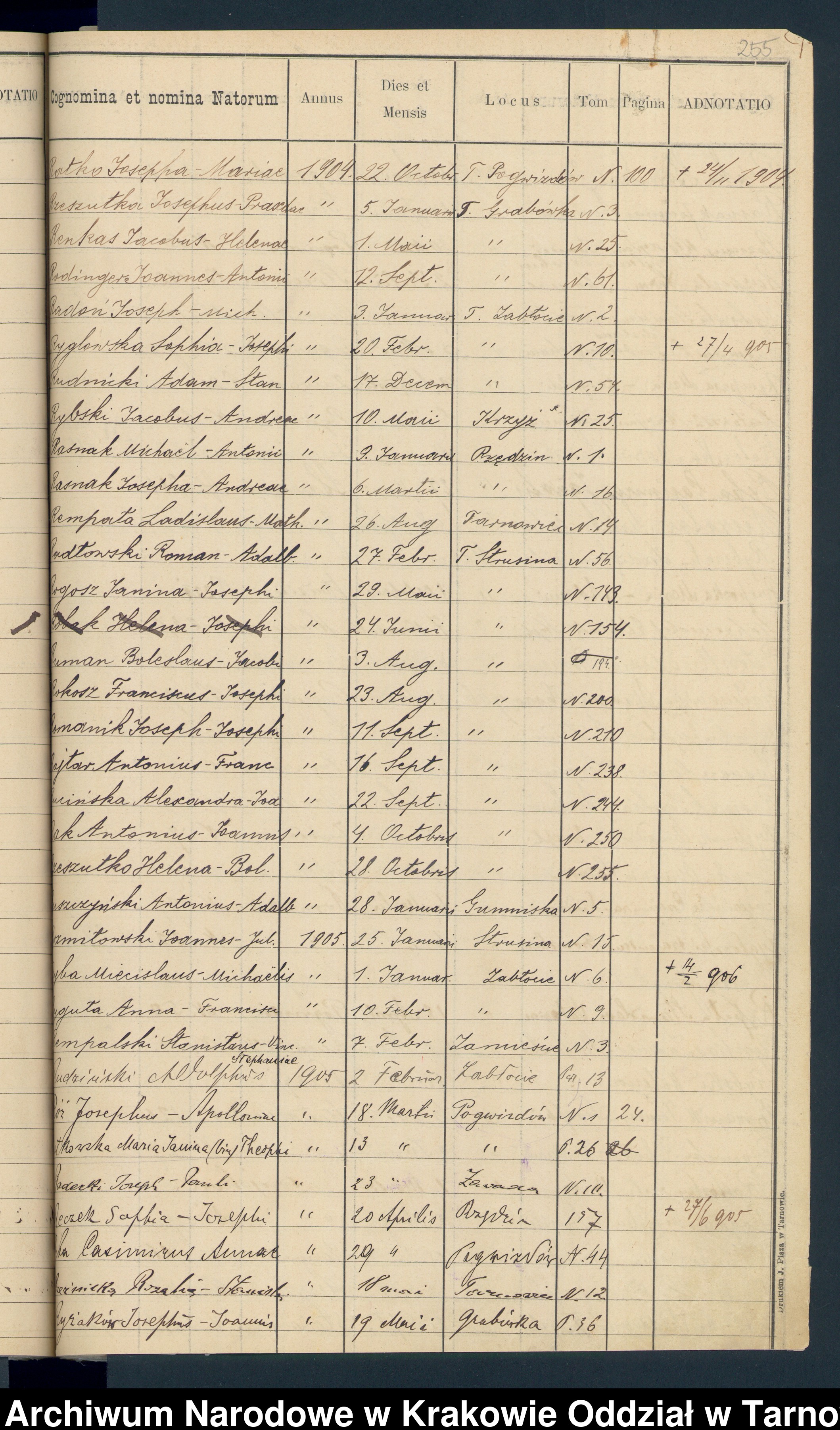 Ur Zofii (tylko w spisie) 20.IV.1905r./Rzędzin; zgon 27.VI.1905r.