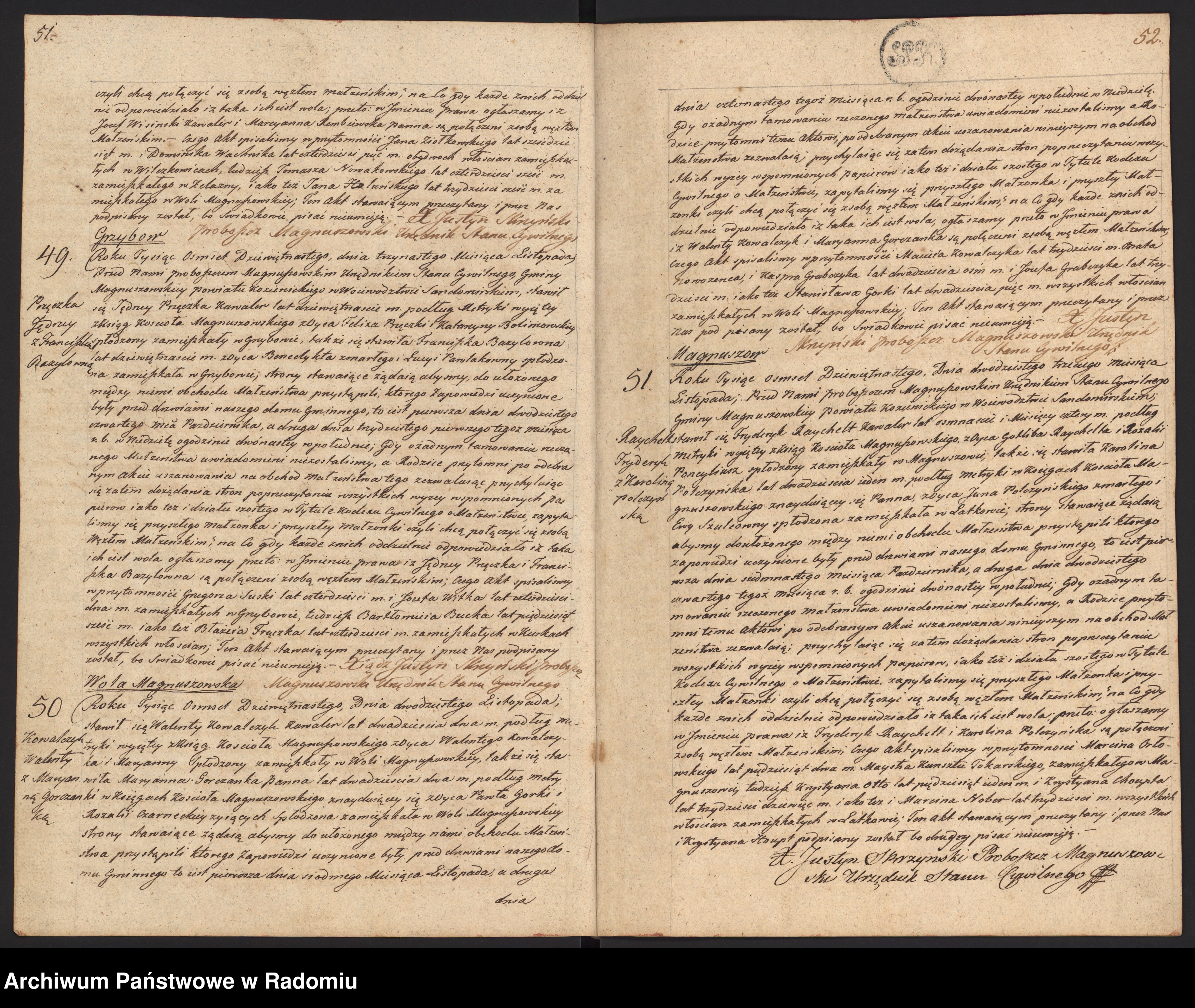 Akt Małżeństwa, Adam Lewandowski, Jadwiga Grzybowska, Sarbiewo 1804