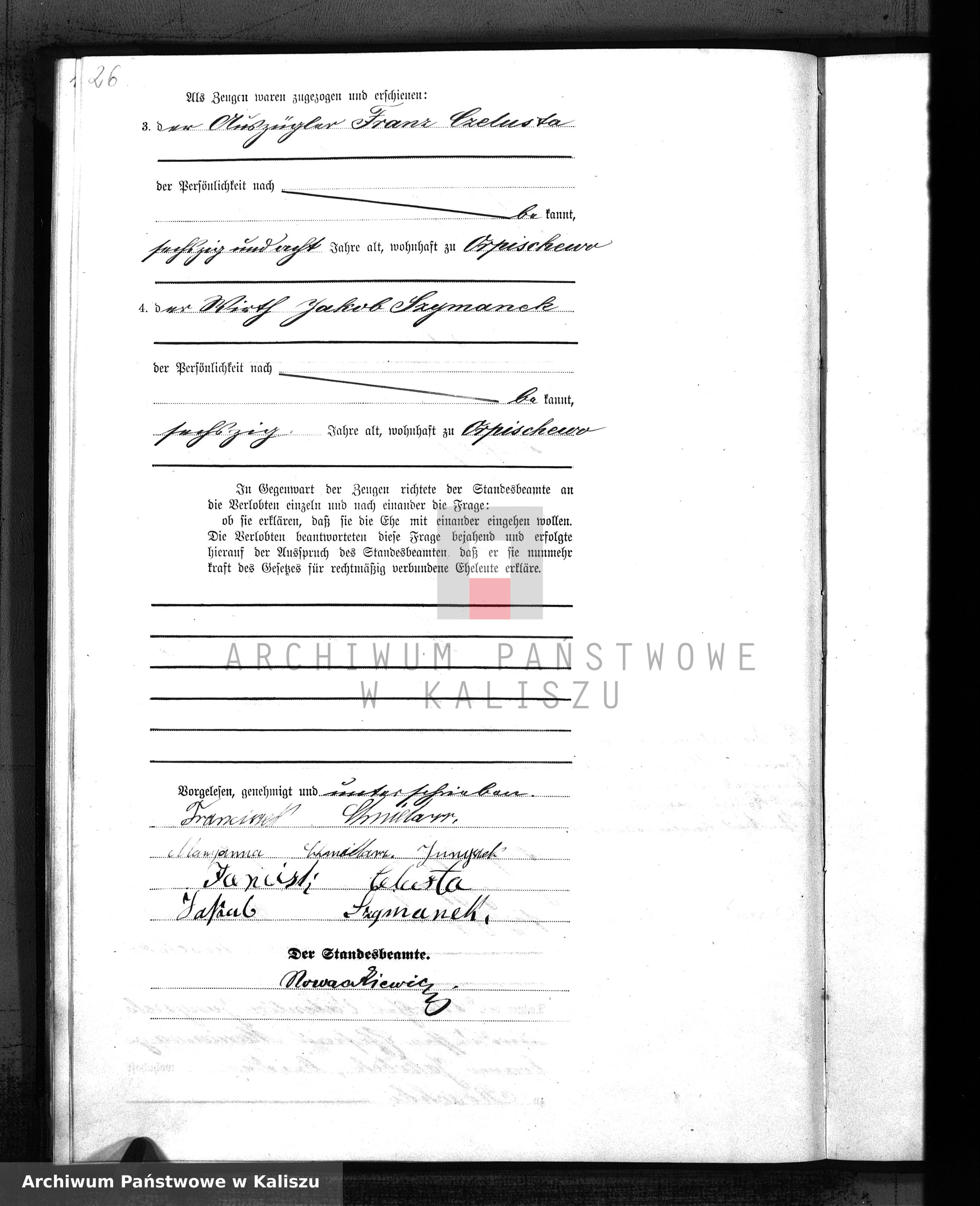 Stawili sie syn gospodarza Franz Chmielarz, znany, katolik ur. 1.10. 1866 Roschki zam. Biniew