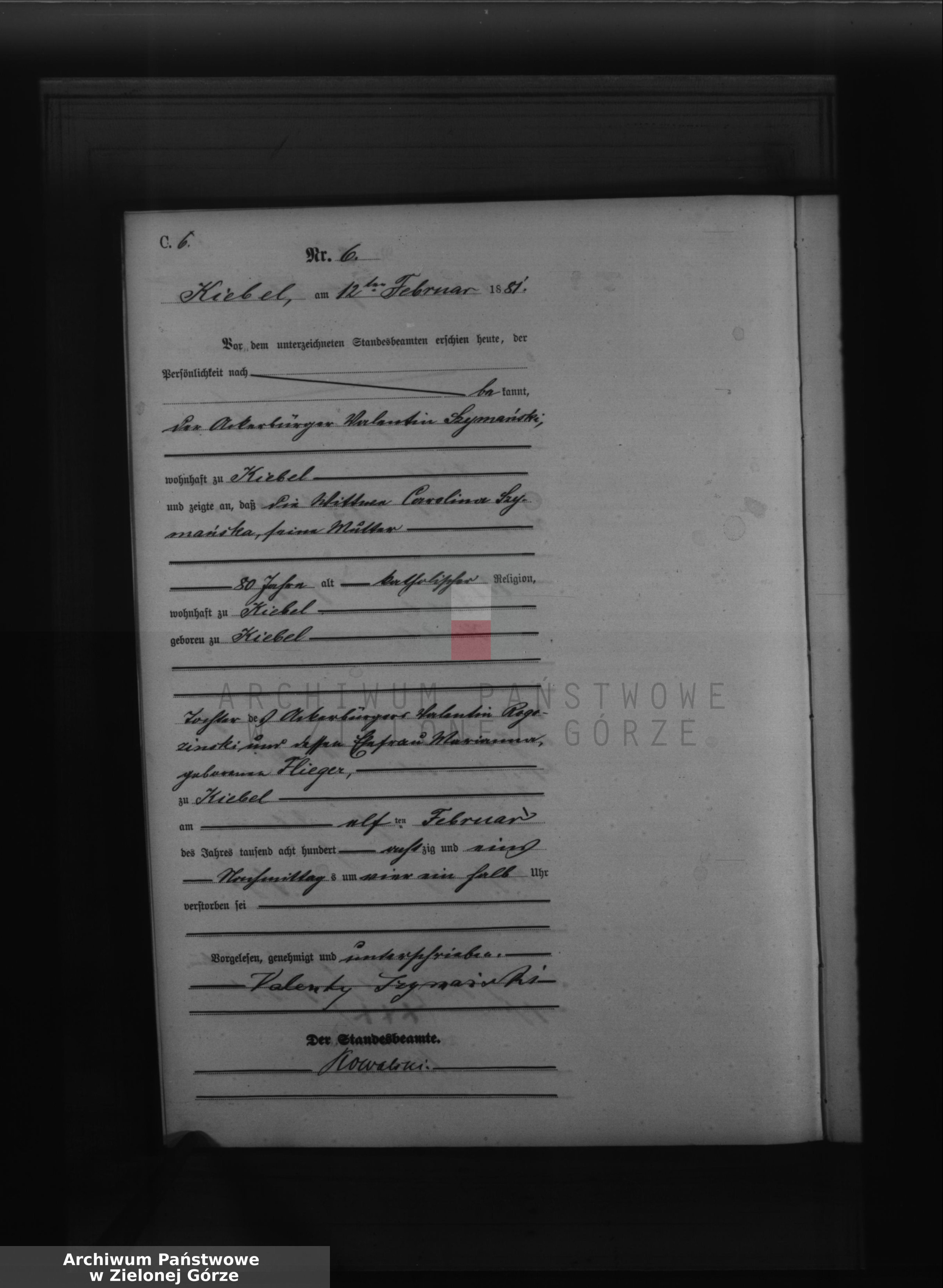 Bardzo proszę o przetłumaczenie zawodu Walentego Rogozińskiego, ojca zmarłej Karoliny Szymańskiej. Akt zgonu pochodzi z Kębłowa z 1881 roku. Jest to akt numer 6.