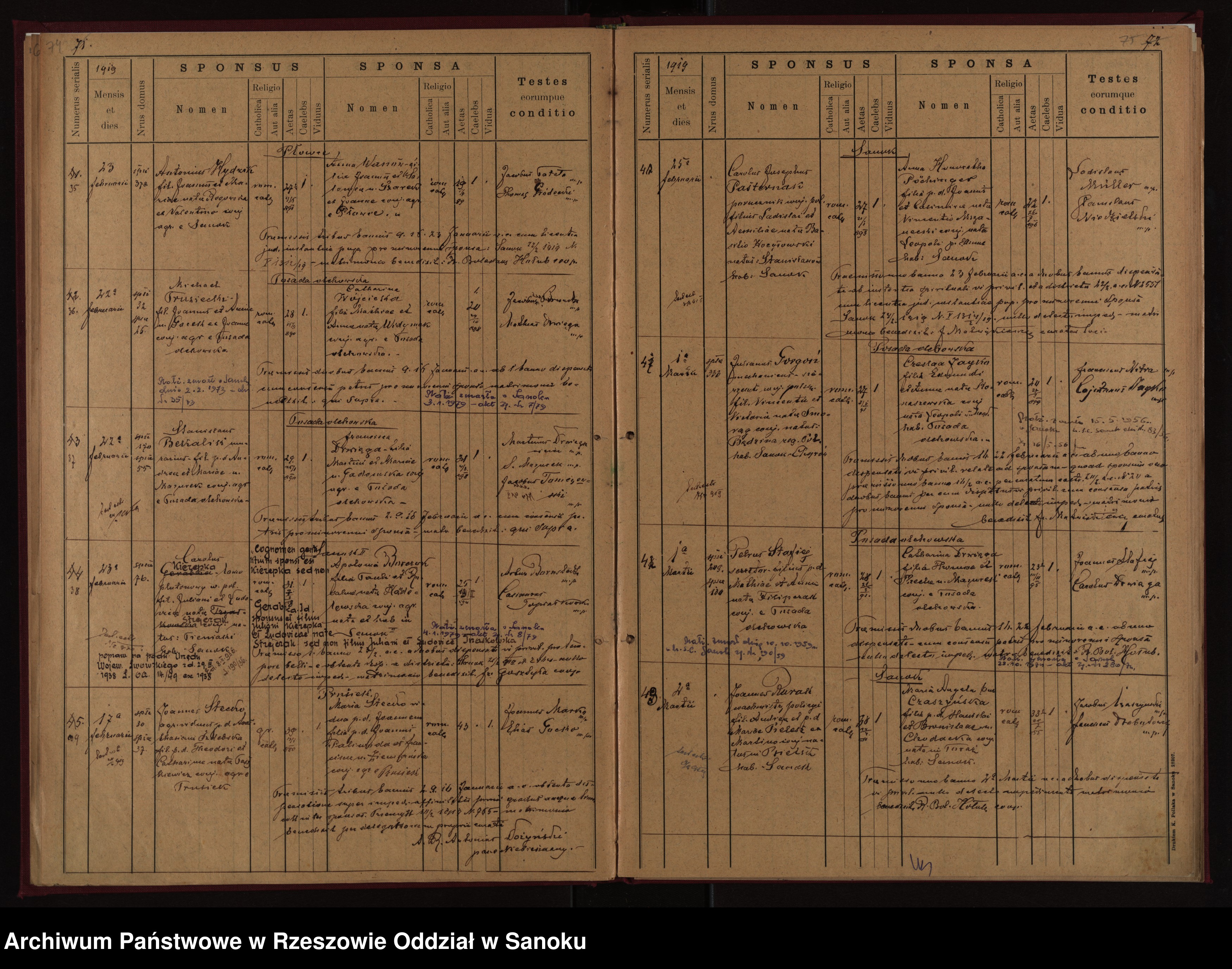 Scan 41; page 71 or 74. Jan Stecko and Marianna Paliwoda marriage 17 February 1919.