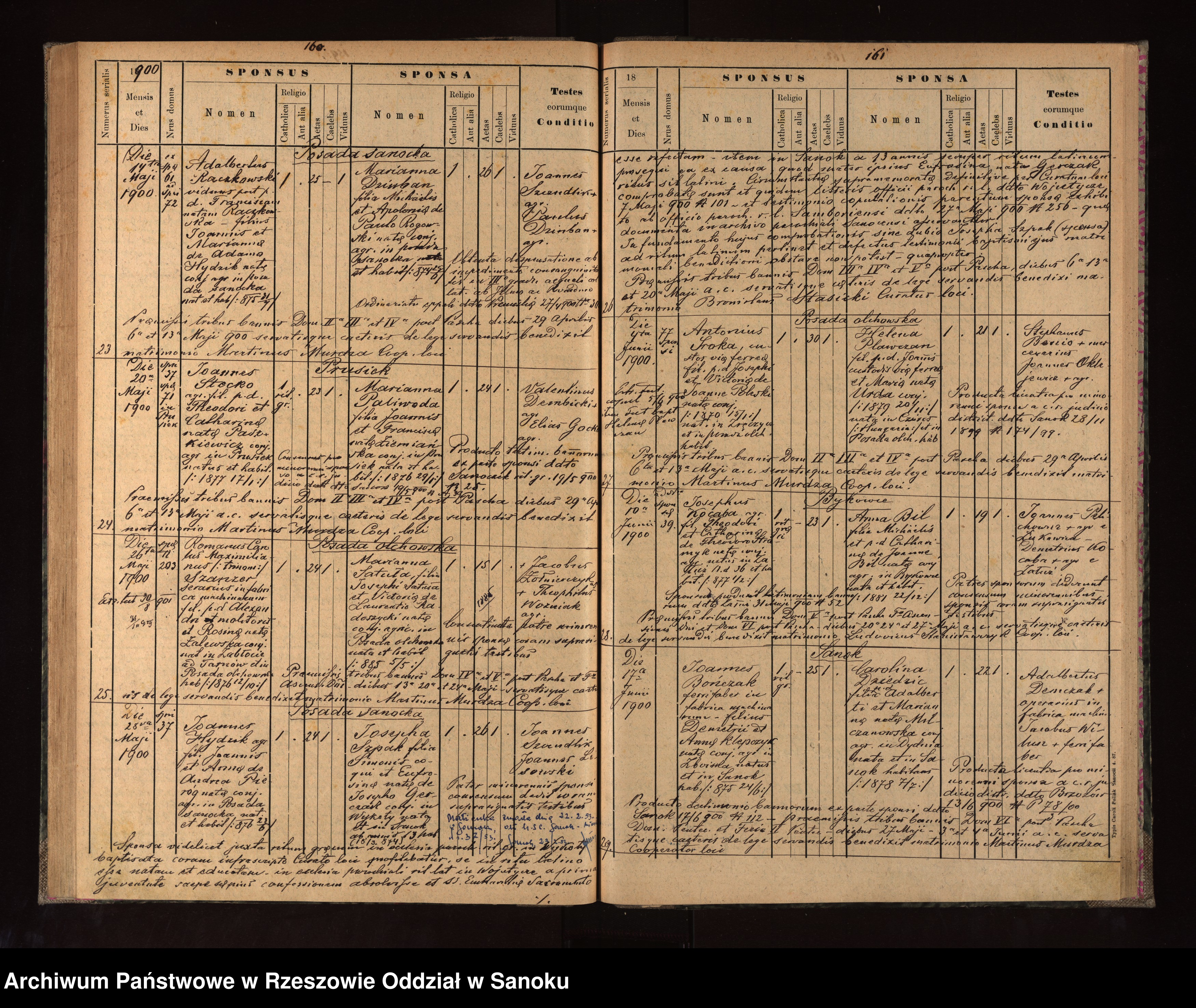 Scan 90; page 160. Jan Stecko and Marianna Paliwoda marriage 20 May 1900.