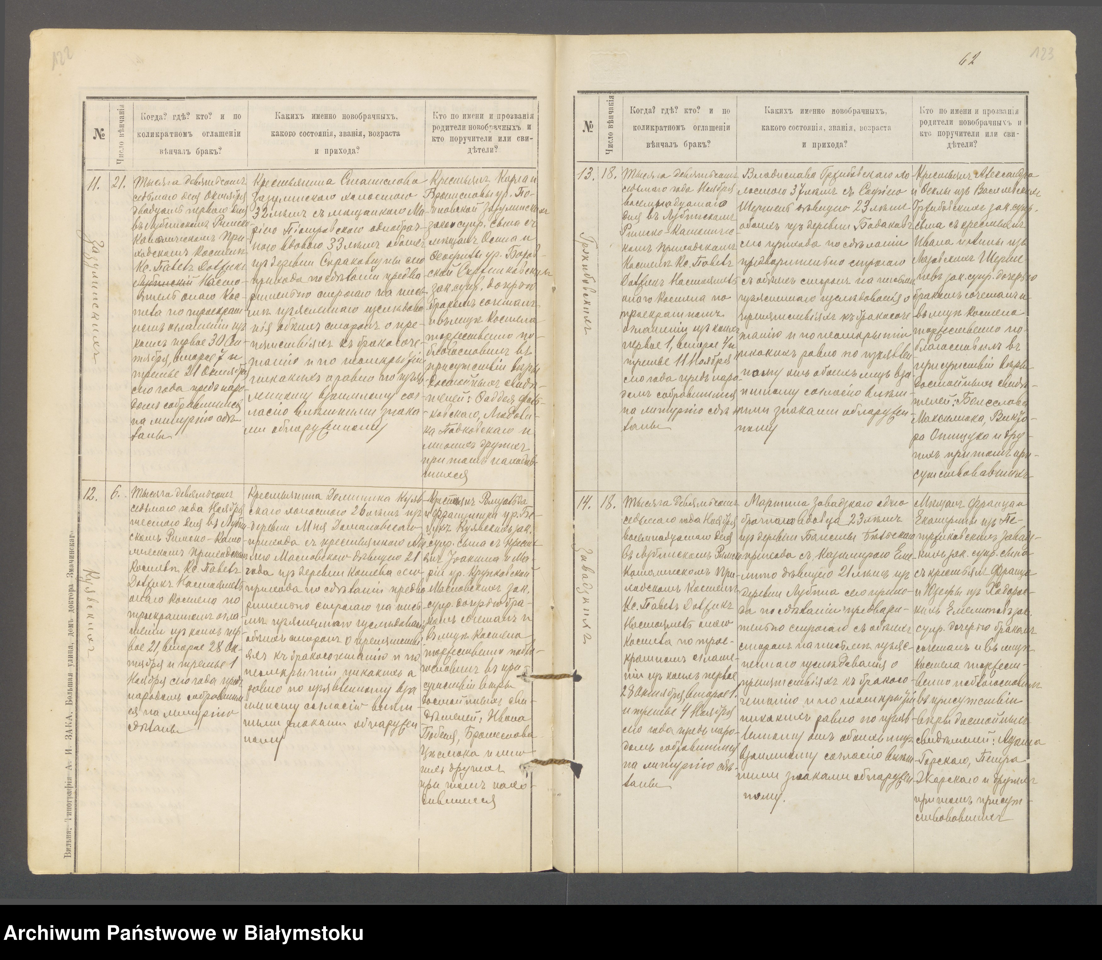 Marianna (Skrzypkowska) Piotrowska wdowa ślub ze Stanisławem Zazulińskim 21.X.1907r. (akt 11)