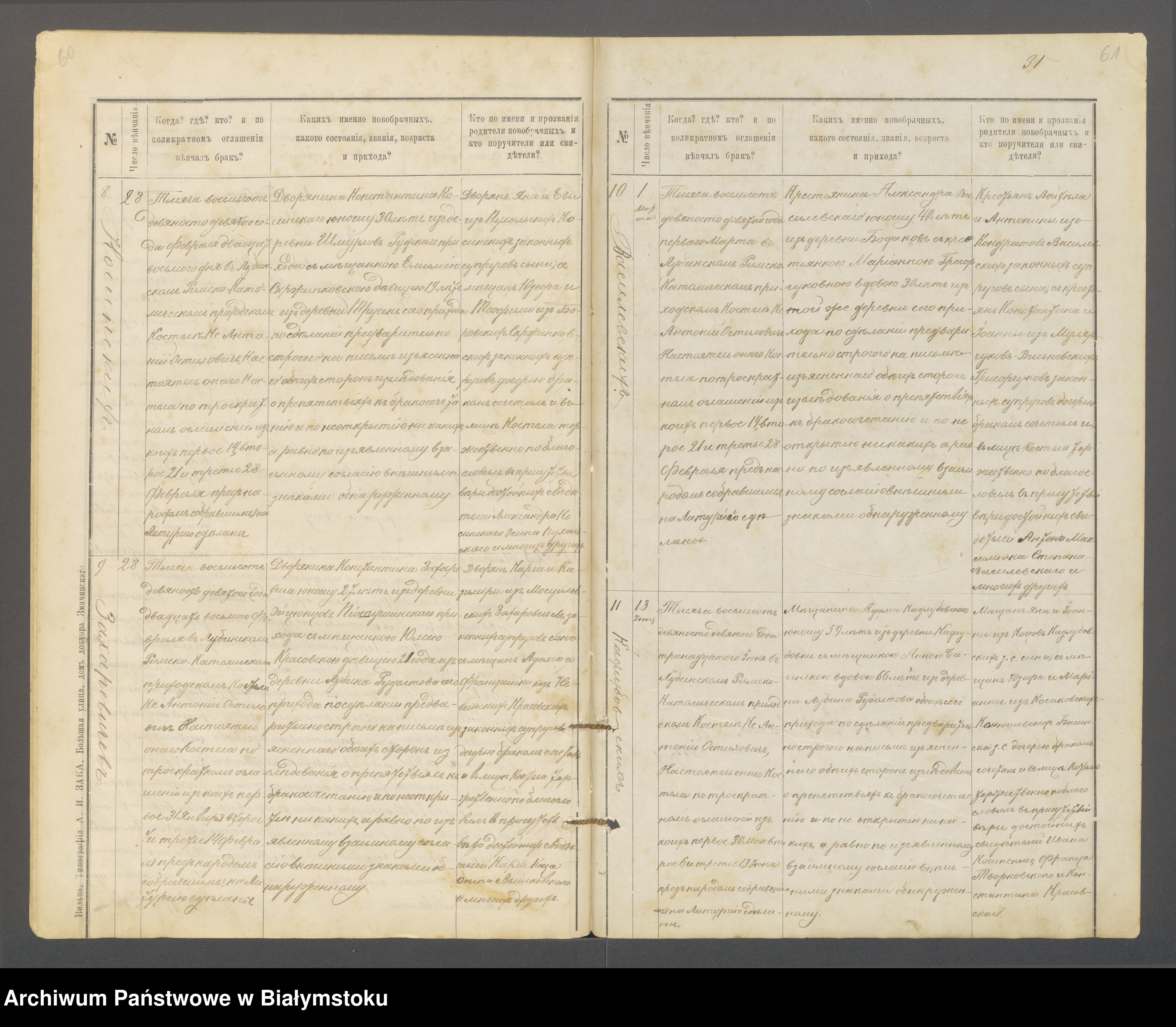 Emilia Skrzypkowska (siostra Marianny) ślub z Konstantym Kosińskim 28.II.1899r./Truski (akt 8)