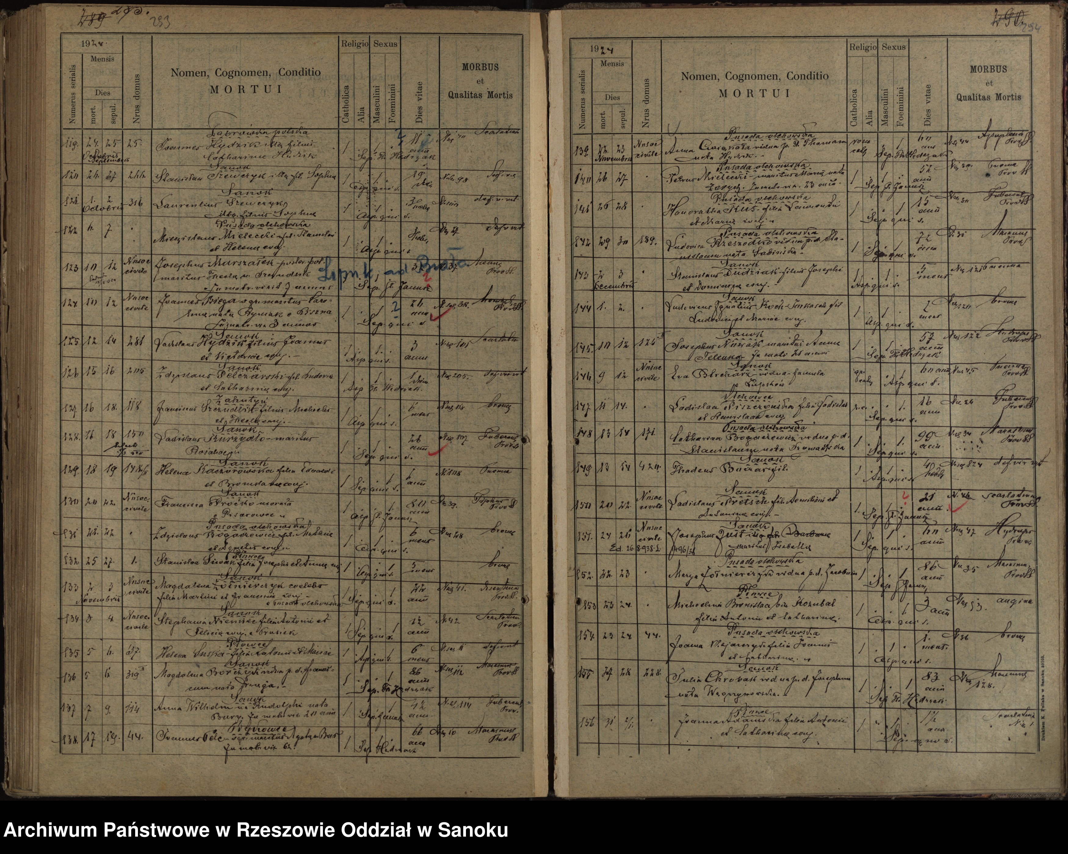 Number 124, Jan Biega, farmer, (born in Liszna), married to Karolina Ryniak for 3 years. He died at age 24 years. I can not decipher his cause of death.