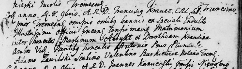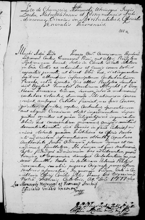 Andrzej75 pisze:Jest to dyspensa od wszystkich 3 zapowiedzi przedślubnych, wystawiona dla sławetnych Marcina Albrychta i Doroty Krauziny, wdowy, a wydana 29 X 1777 r. przez Leona Morawskiego, oficjała generalnego gnieźnieńskiego.