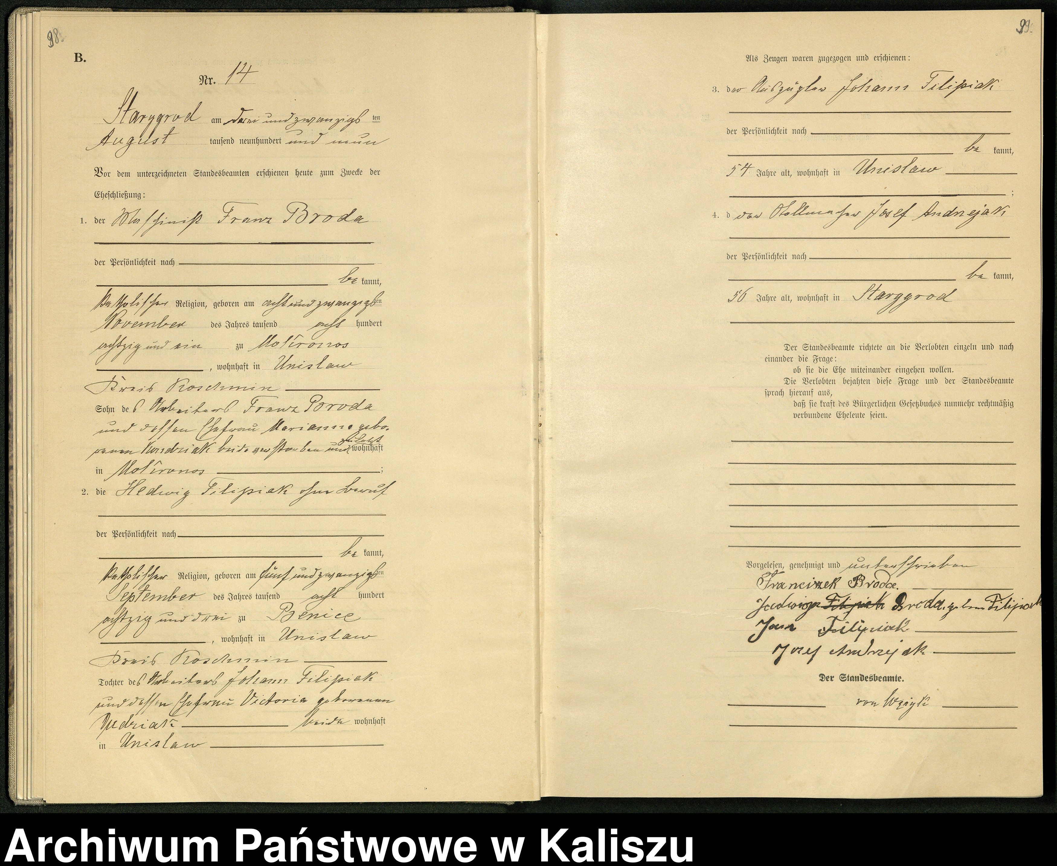 Chodzi o akt ślubu numer 9/1909 z 25.08.1909.Robi_1918 pisze:Dzień dobry