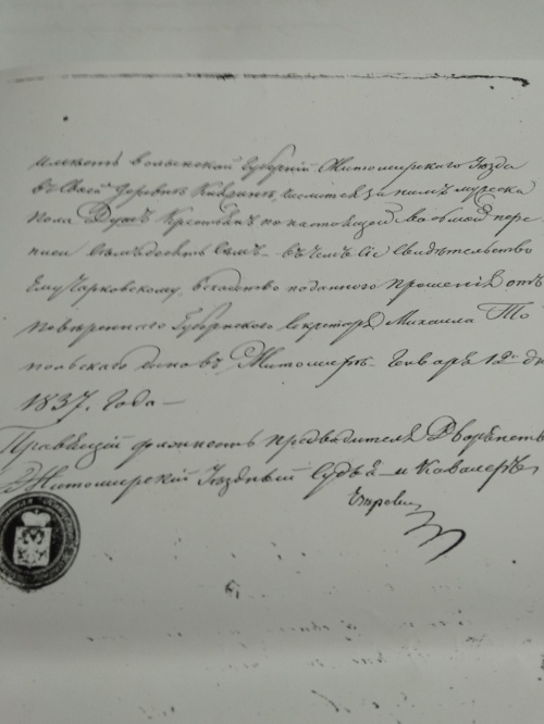 Житомирский Уездный Судья и Кавалер, /Подпись/