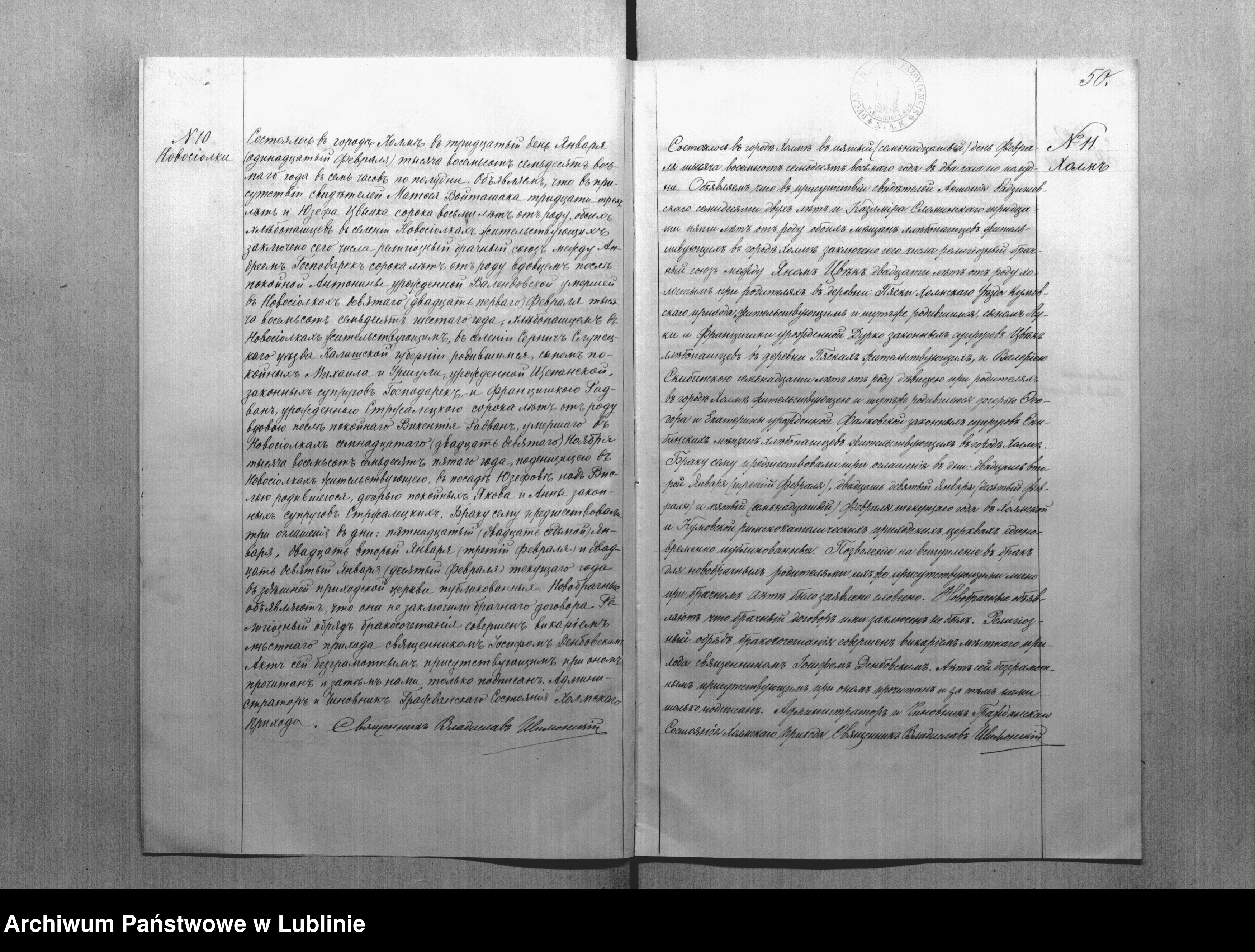 Świadkowie: Antoni Radziszewski 72, Kazimierz Słomiński 35, obaj mieszczanie rolnicy zam. w mieście Chełm,