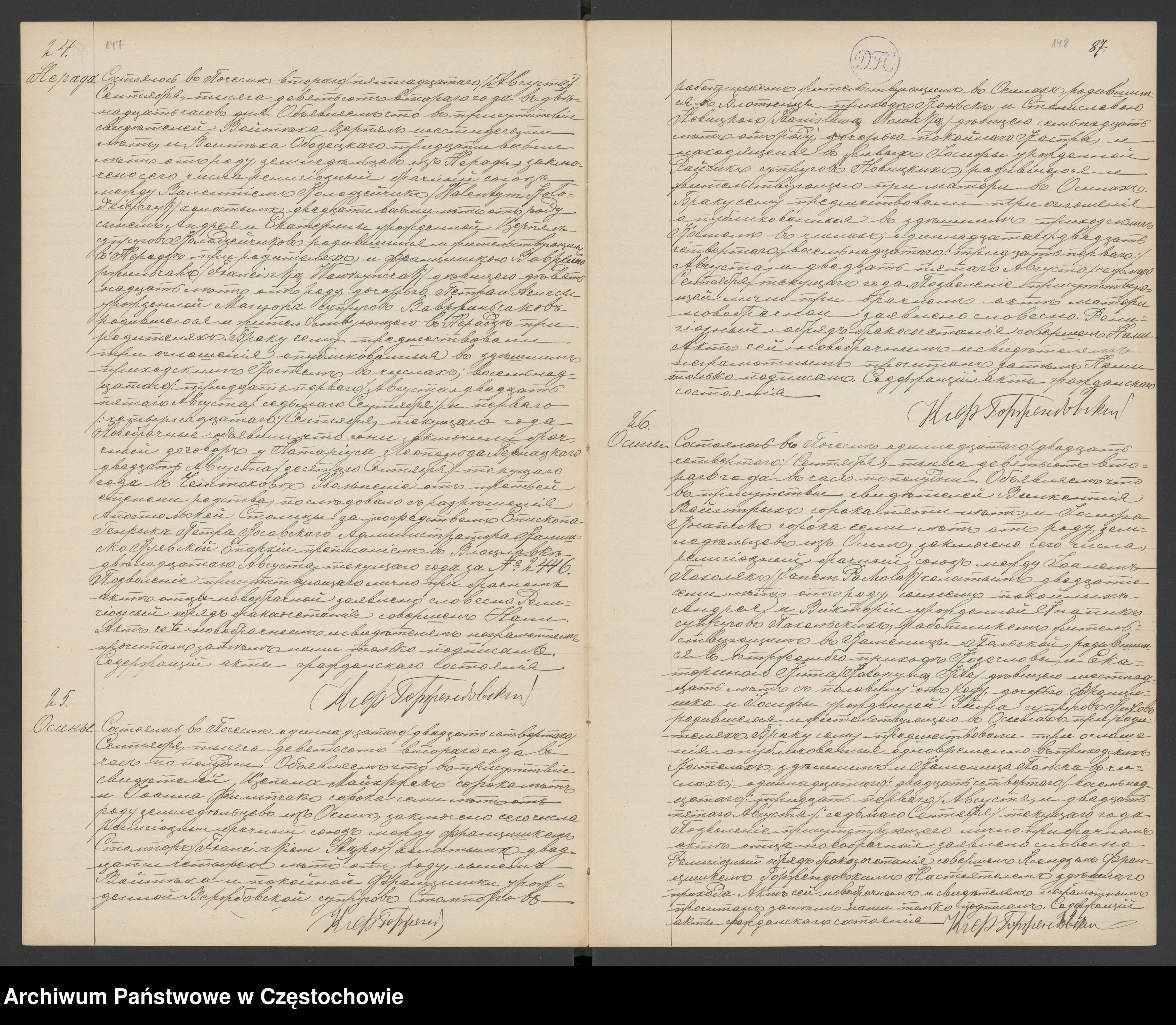 to jest akt 1410 z 1905 roku, Częstochowa, parafia św. Zygmunta