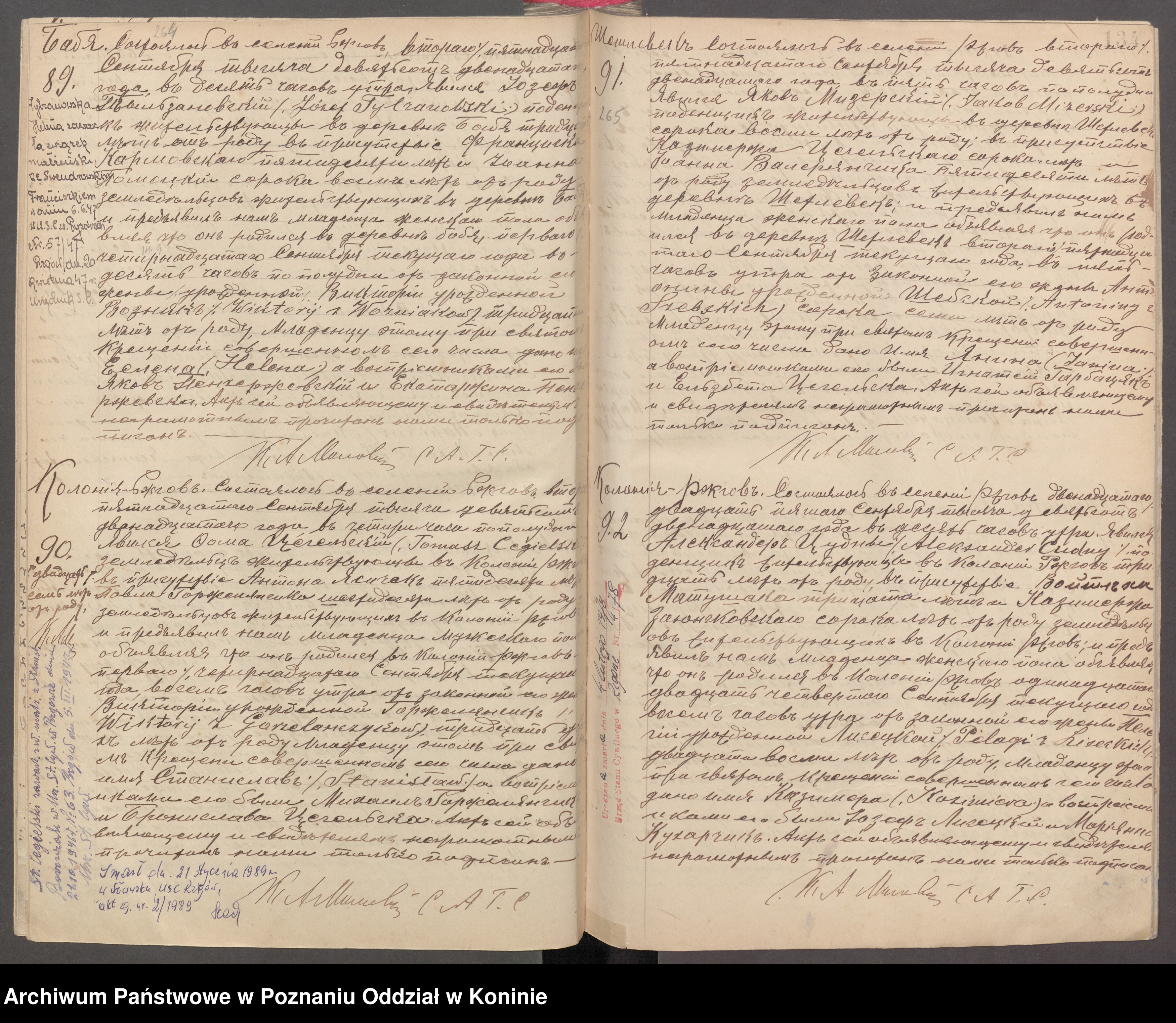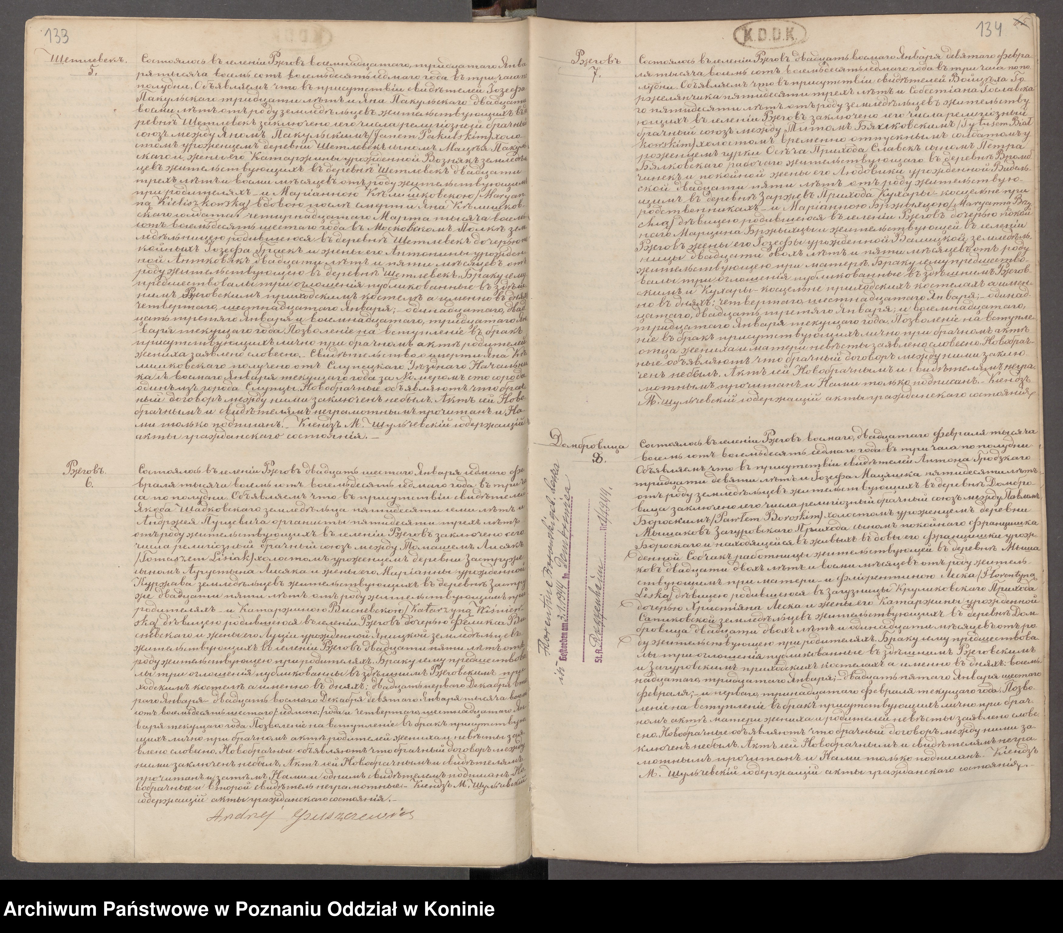 Świadkowie: Wojciech Matuszak 30l. Kazimierz Zajączkowski 40l. włościanie mieszkający w Kolonii Rzgów