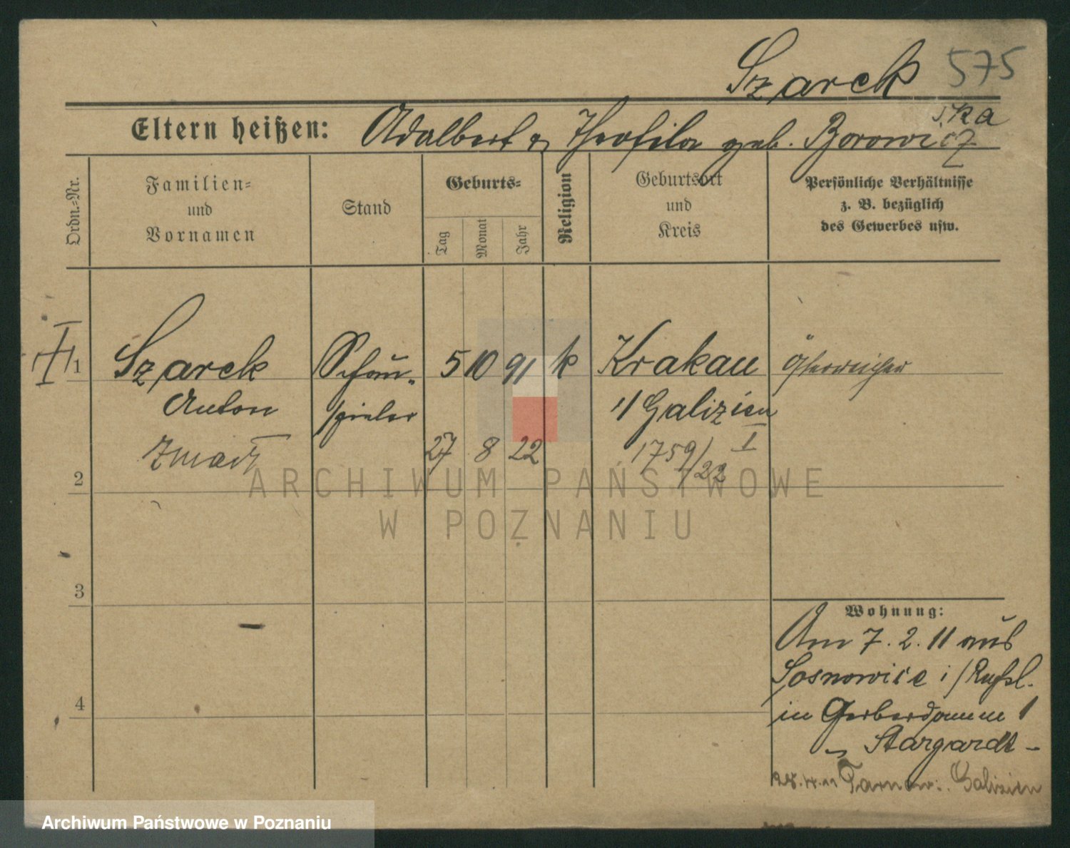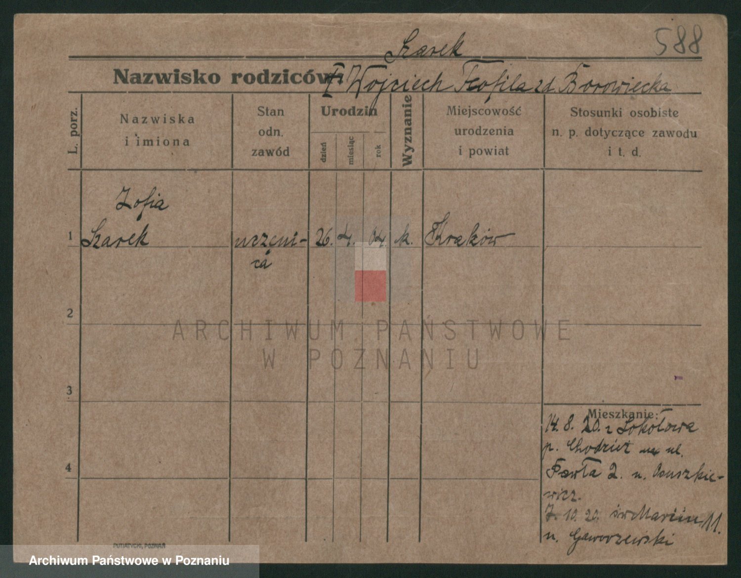 E-kartoteka Poznań ,karta meldunkowa nr 582