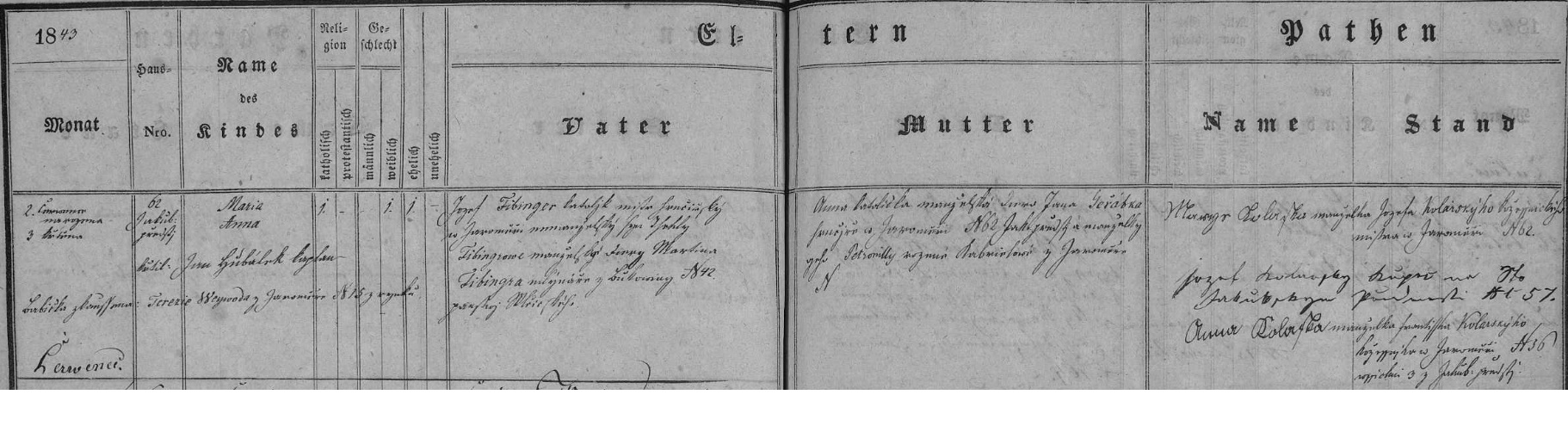 Uprzejmie proszę o przetłumaczenie aktu urodzenia Marii Anny Fibinger, data 02.07.1843(?), rodz. Józef Fibinger i Anna.