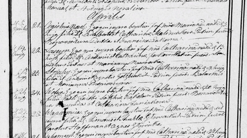 rodzice: sławetni [Augustyn — skreślono i poprawiono na: Jan] Pijański, karczmarz, i Maryna Gabler/Gebler [?], ślubni małżonkowie