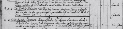 Tego samego dnia umarł chłopiec imieniem Wojciech, syn uczciwych Antoniego i Agnieszki ślubnych małżonków Strzecharzów, dotknięty ospą, jego ciało pochowano na cmentarzu 25 bm. Miał 1 rok.