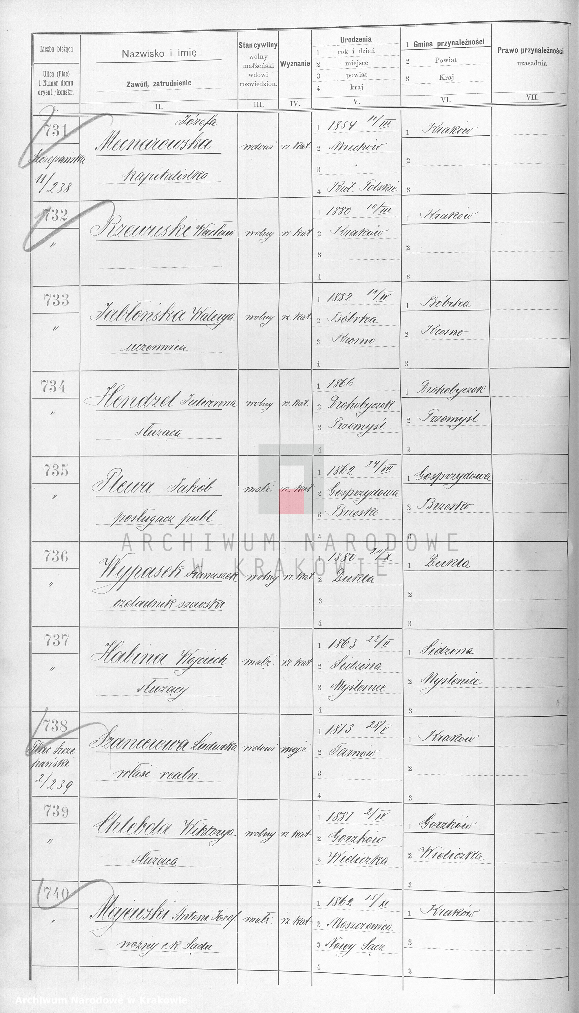 w spisie z 1900 r. - księga IV poz 737 ul. Szczepańska 11/238