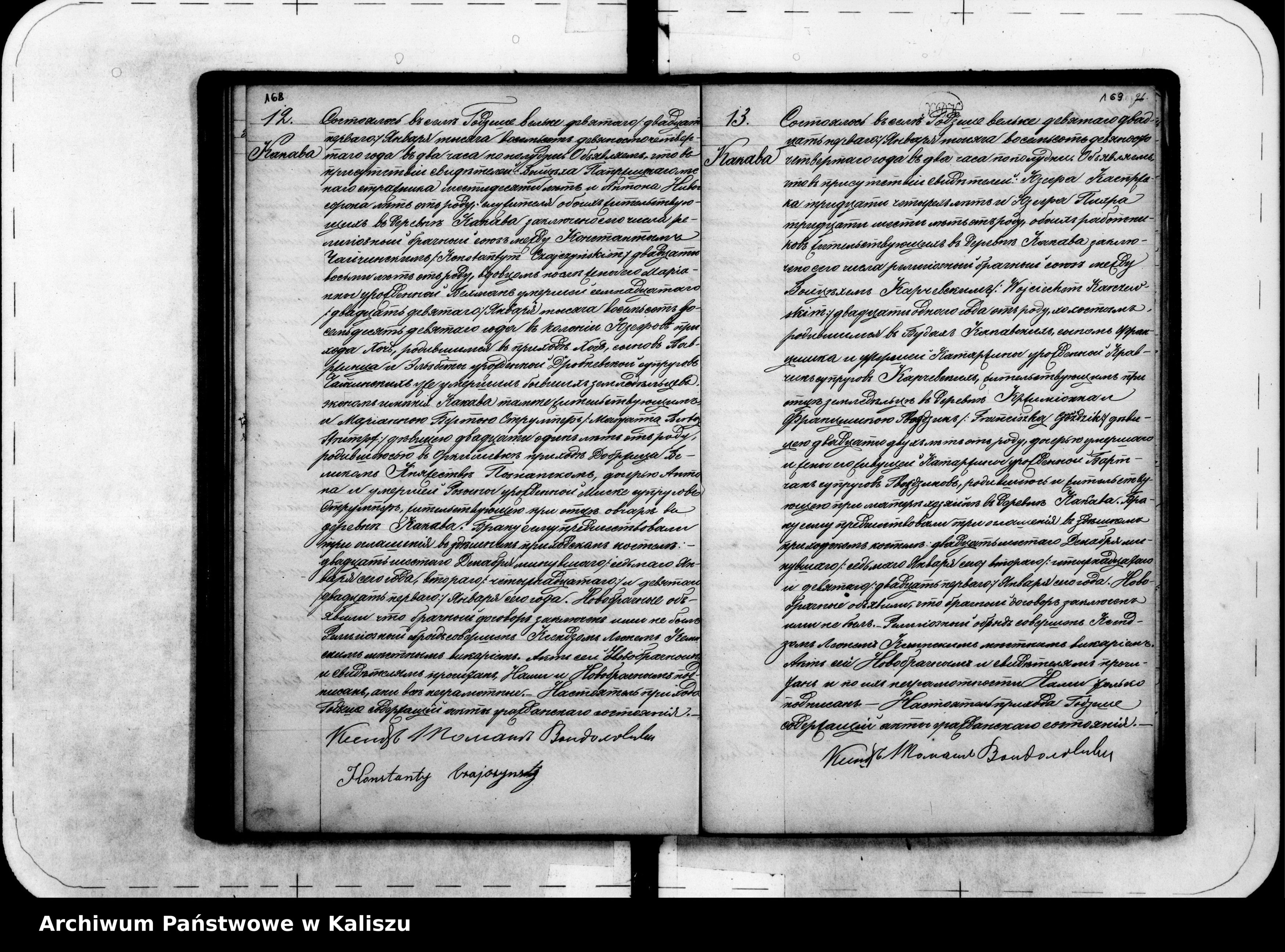Świadkowie: Antoni Gonera 27, Franciszek Pawlik 27, obaj rolnicy zam. we wsi Kakawa,