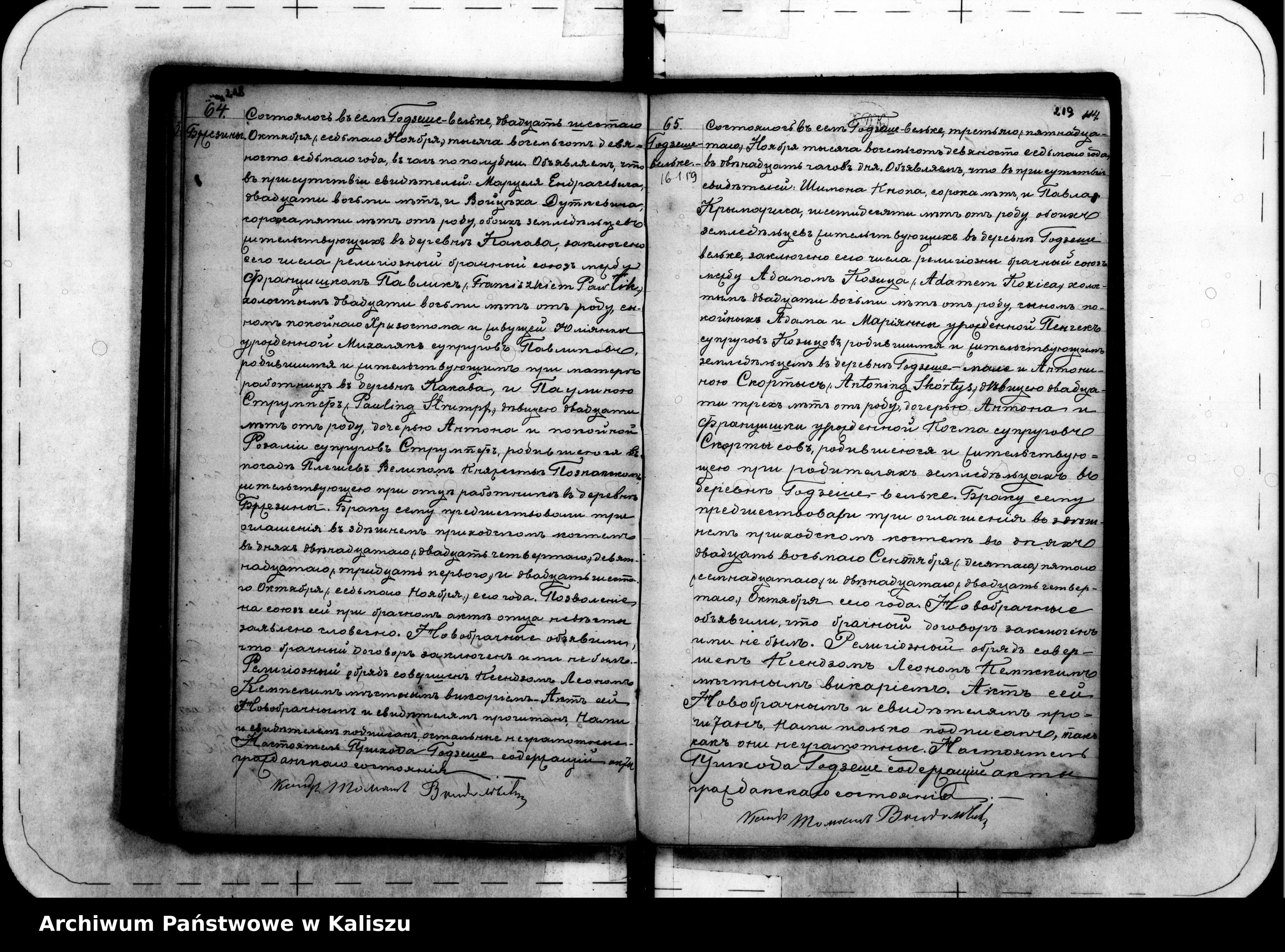 Świadkowie: Maciej Jędrasiewicz 28, Wojciech Dutkiewicz 45, obaj rolnicy zam. we wsi Kakawa,
