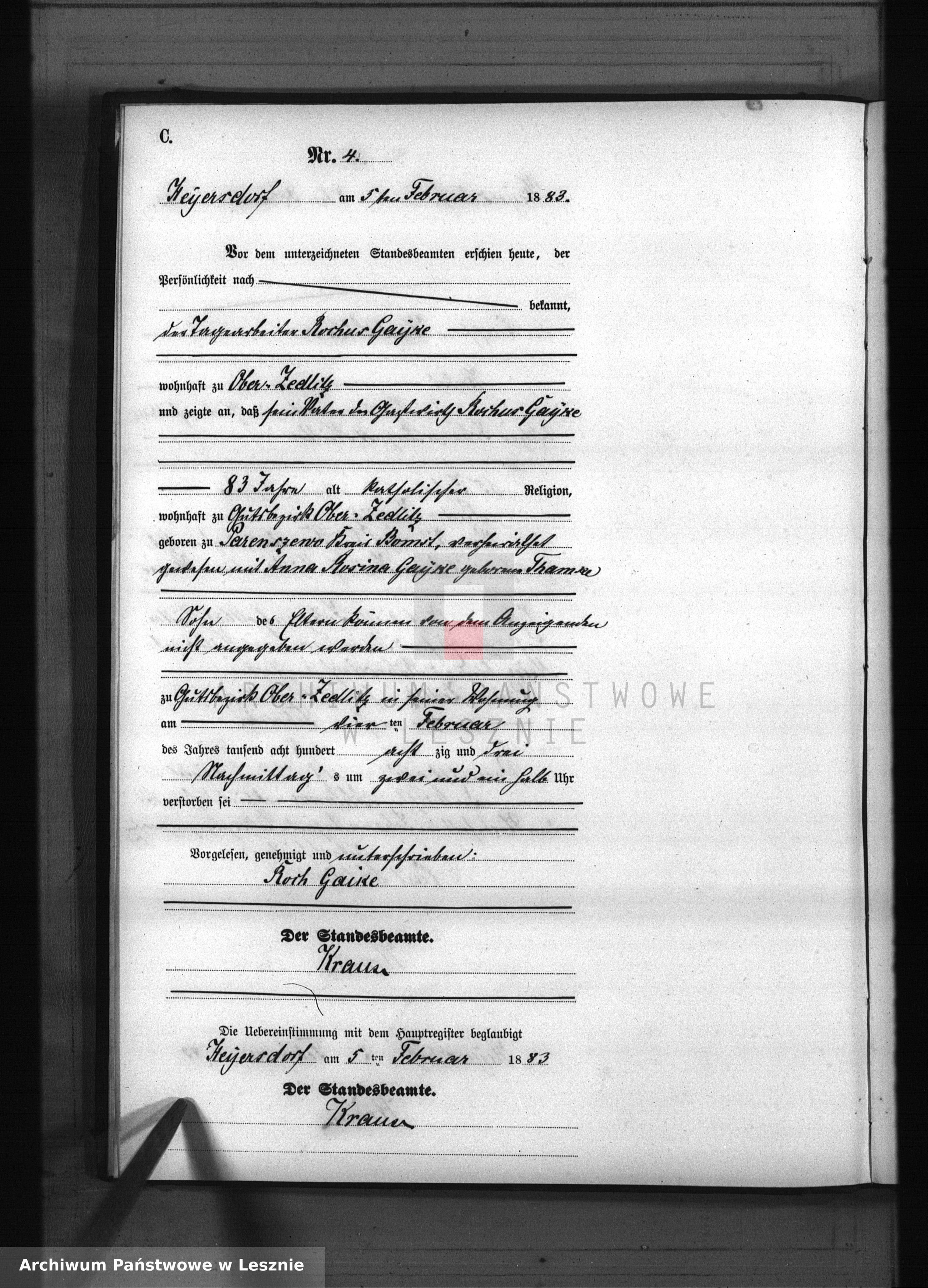 Miejscowość, o której mówię, to Jędrzychowice (powiat wschowski). Niemiecka nazwa miejsca, w którym mieszkał Rochus Gajke, to "Ober Zedlitz". Przynajmniej taki wniosek wyciągam ze strony baSIA:
