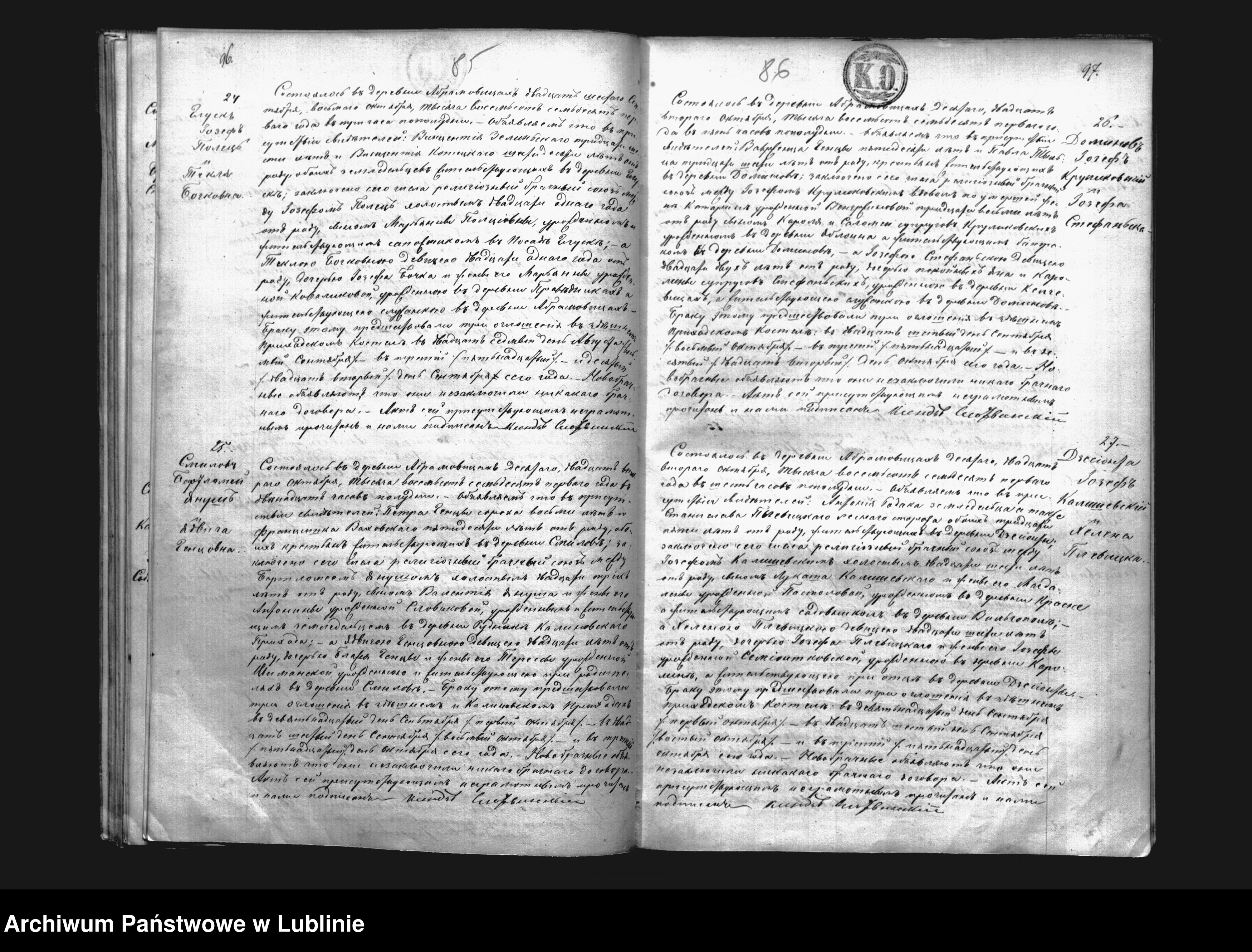 Zwracam się z prośbą o tłumaczenie aktu ślubu- nr aktu 26, zawartego w Abramowicach w roku 1876 między Józefem Królikowskim i Józefą Stefańską(?).