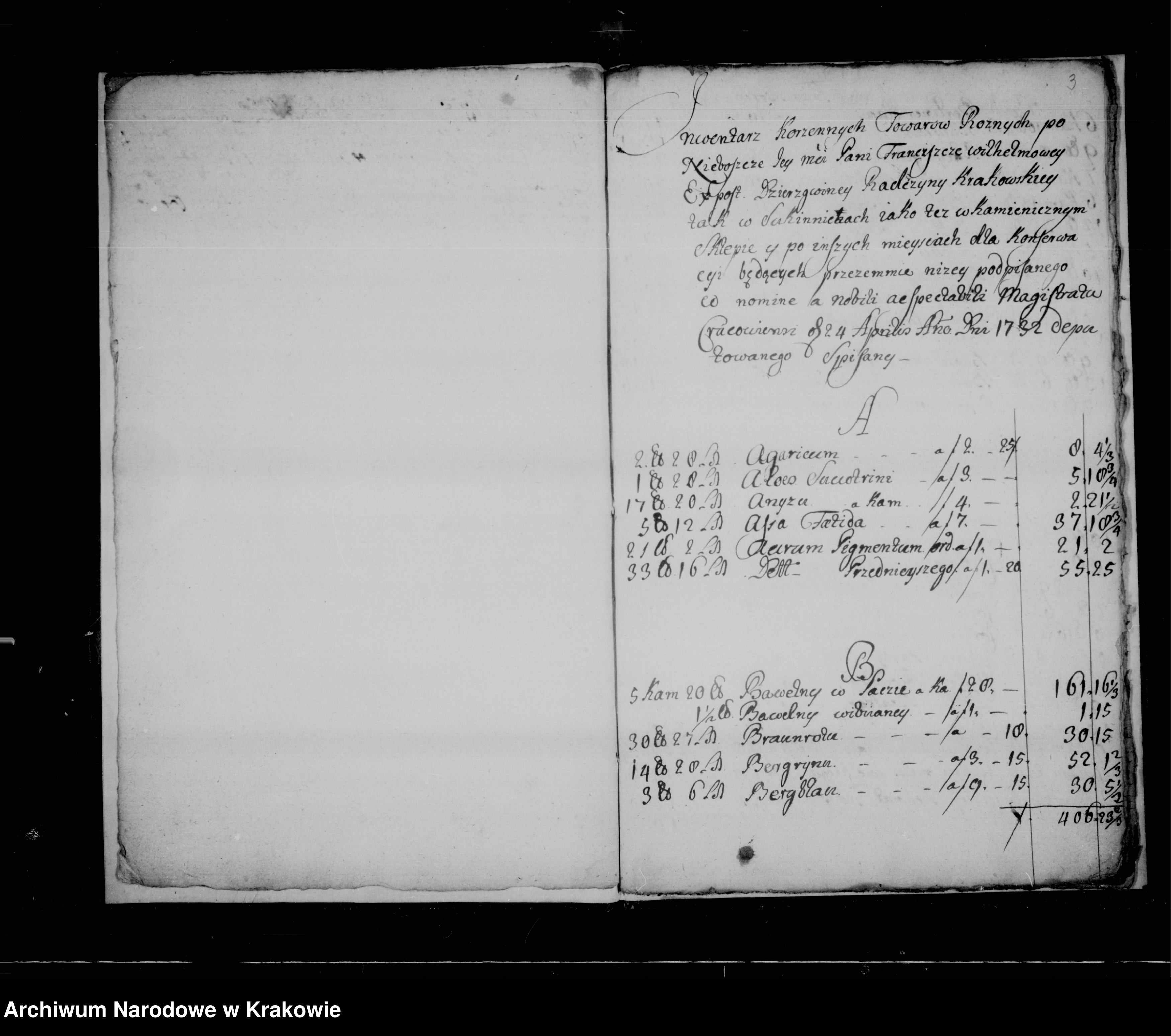 Inwentarz Korzennych Towarów Różnych po śp. Pani Franciszce Wilhelmowej etc..