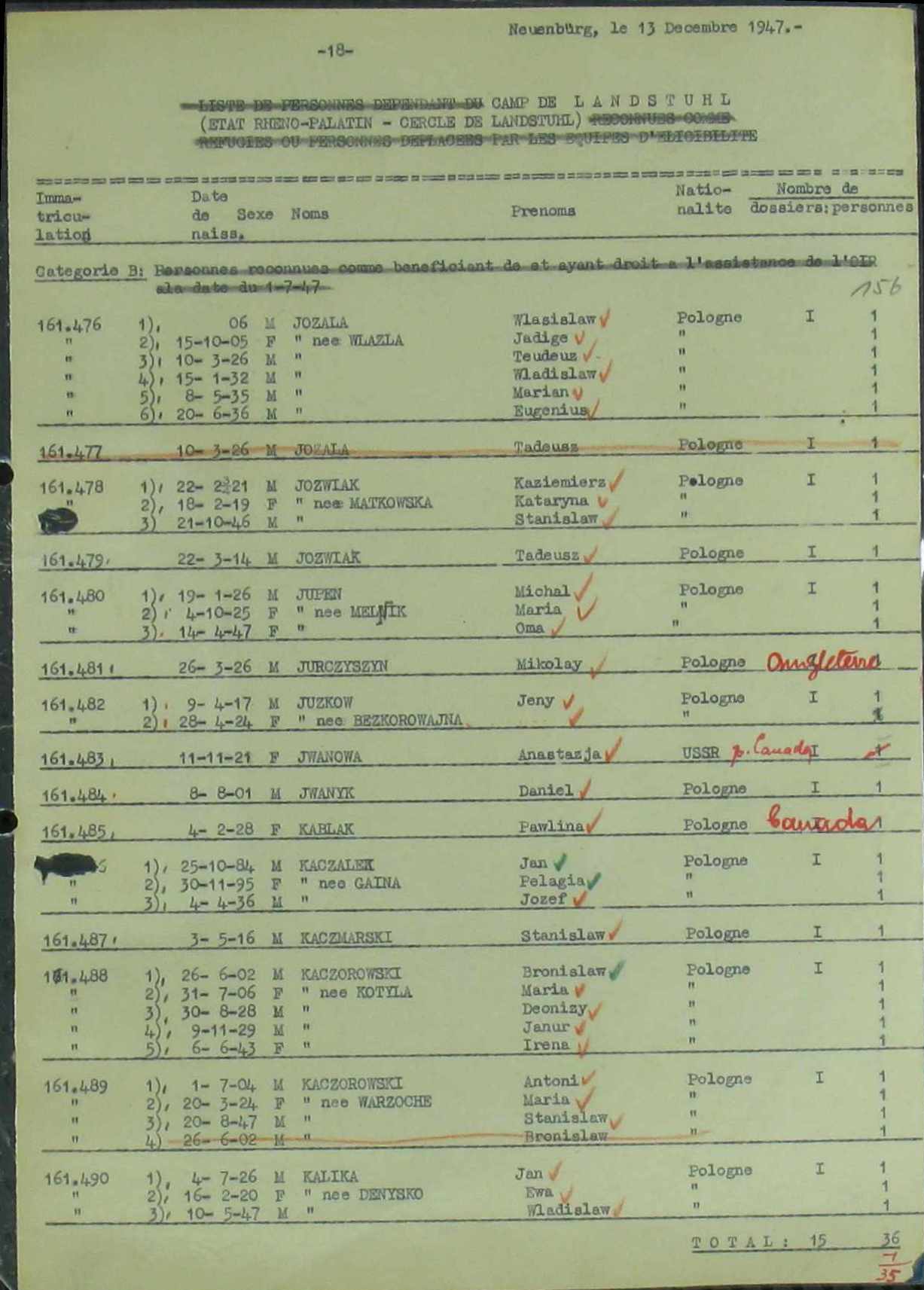 listy osób z paszportami lub książeczkami wojskowymi,