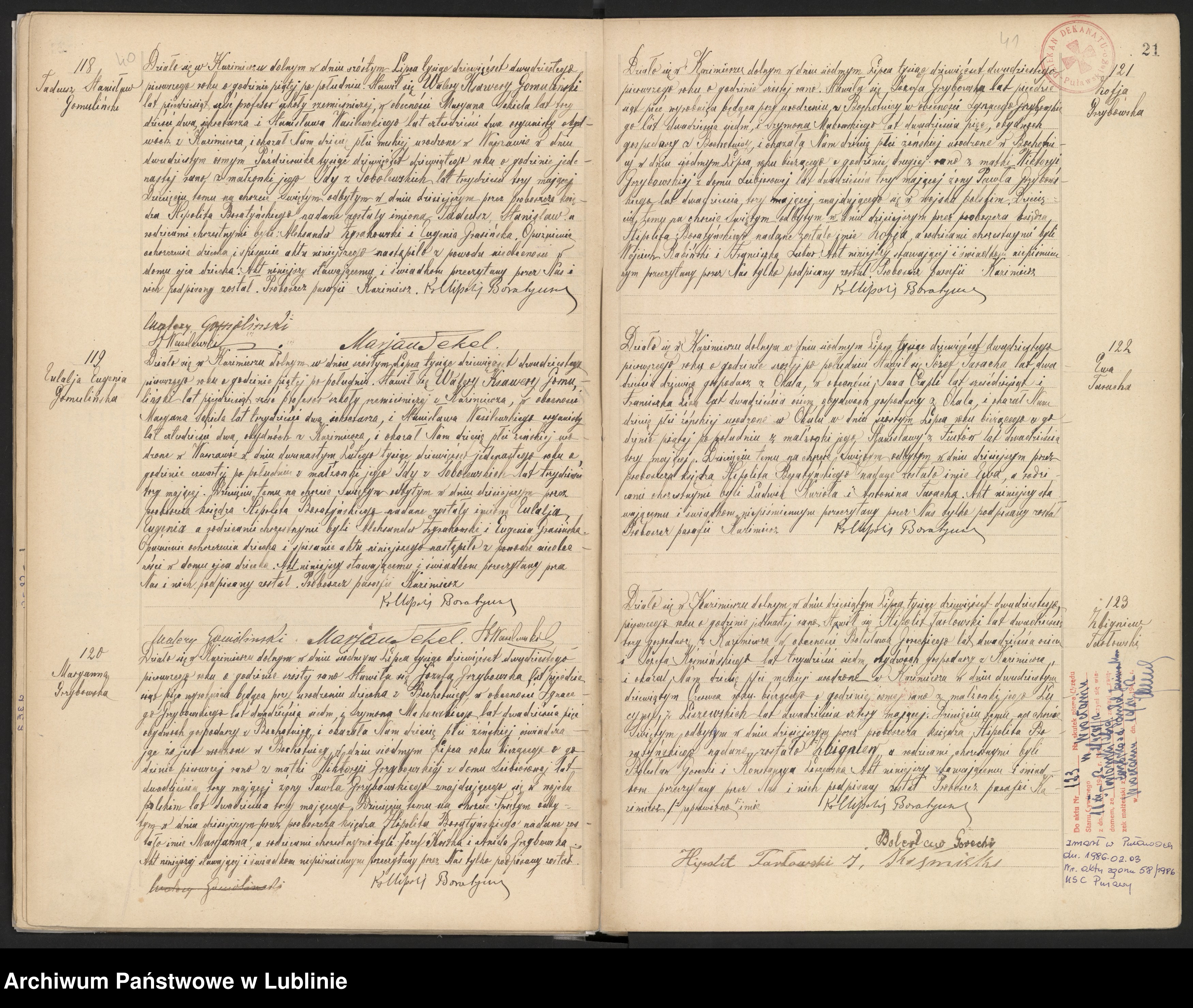 Mnie chodzi o adnotację obok aktu z kim zawarł związek małżeński urodzony Zbigniew Tarłowski...