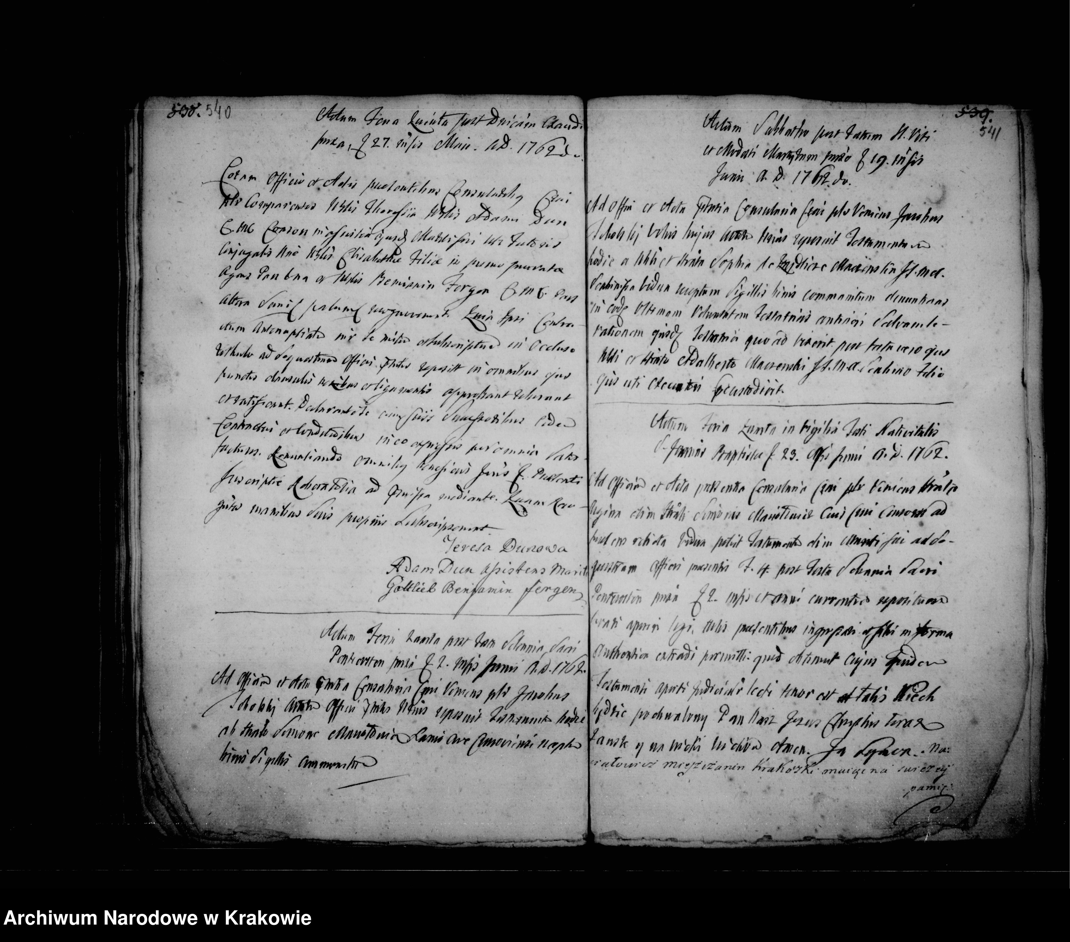 Widzę, że dokument jest spisany 27/05/1762 roku (2 dni przed ślubem). Więcej nie potrafię przeczytać.