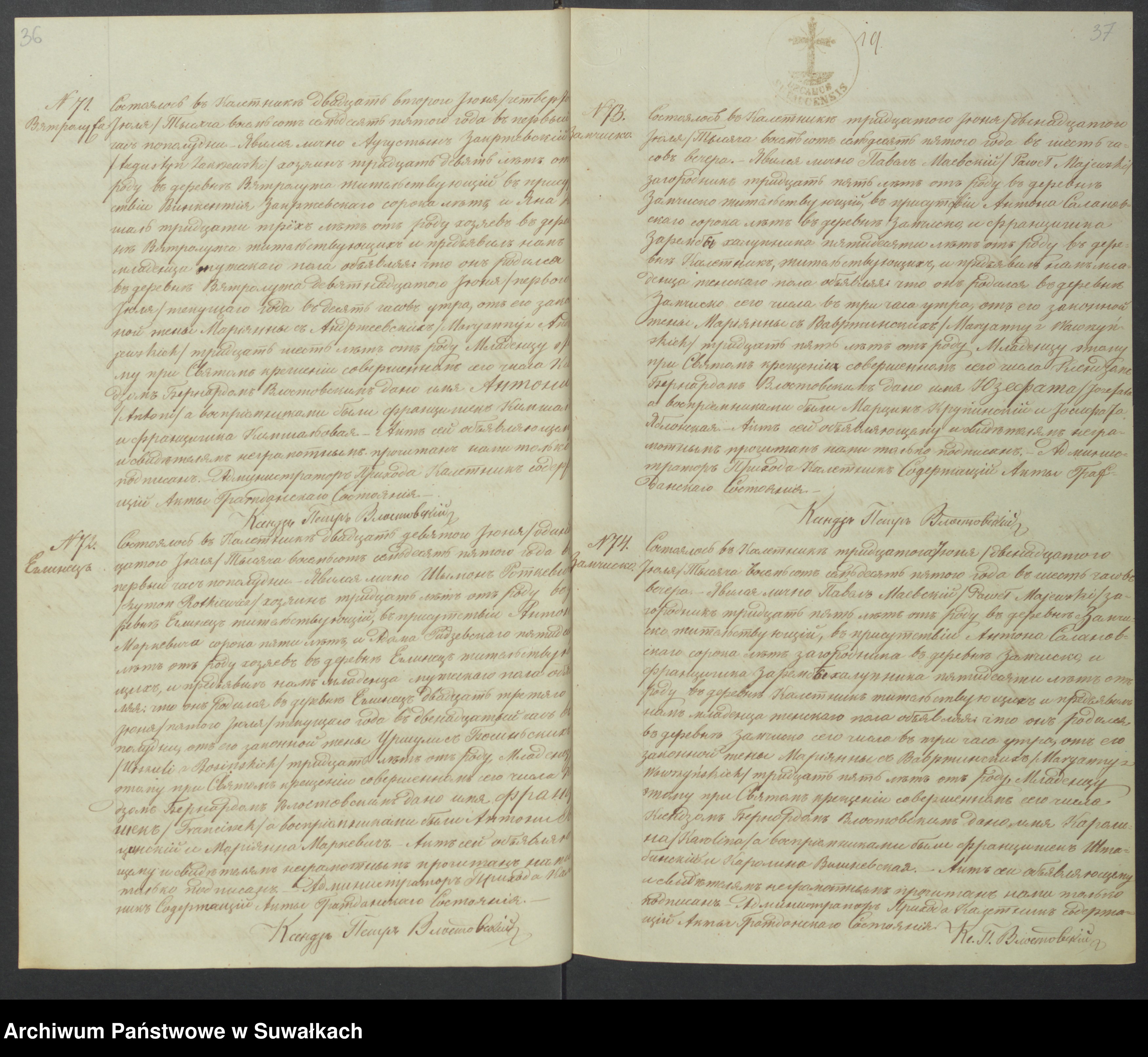 Zwracam się z prośbą o pomoc w odnalezieniu metryki mego pradziadka Stanisława Zakrzewskiego syna Augustyna i Maryanny z domu Andrzejewskiej. W odpisie zupełnym jest informacja, że się urodził w Wiatrołuży ok. 1874r., a zmarł 31.10.1946r., jako syna Augustyna Zakrzewskiego, matka nie jest podana. Wziął ślub 15.02.1904 r. z Anielą Sztabińską - córką Józefa (Osip) Sztabiński i Franciszki z domu Jurkiewicz z Ustronia - w tym akcie jest podana jego matka jako Maryanna Andrzejewska. Jego dzieci - Marianna Zakrzewska (1905- 1987 metryki w parafii Kaletnik nie ma, mój dziadek Franciszek (1907-1992) również podane miejsce urodzenia jako Wiatrołuża- metryki brak. Józef Zakrzewski (1911-1982) metryka jest w parafii Kaletnik i kolejne dziecko Zenon (1913-1944 informacja ze strony straty IPN, do chwili obecnej sprawa nie zamknięta - 13 z 20 jest zindentyfikowanych. Brat mego dziadka niestety nie. Otrzymałam również informację, że Stanisław brał udział w Powstaniu Sejneńskim - sprawdzony CAW, IPN nic nie znalazłam, czekam jeszcze na odpowiedź z archiwum. Mój pradziadek miał również brata Konstantego ur. 09.04.1869 w Wiatroluży jako syn Augustyna i Maryanny Andrzejewskiej. Dalsze losy na chwilę obecną nie są mi znane. Proszę o jakąkolwiek wskazówkę. Jedną z informacji jaką podpowiada Ancestry jest informacja, że metryka może znajdować się w archiwum w Niemczech - Prowincje Prus Wschodnich, Niemcy [Polska], Wybrane Witalia Cywilne, 1874-1945