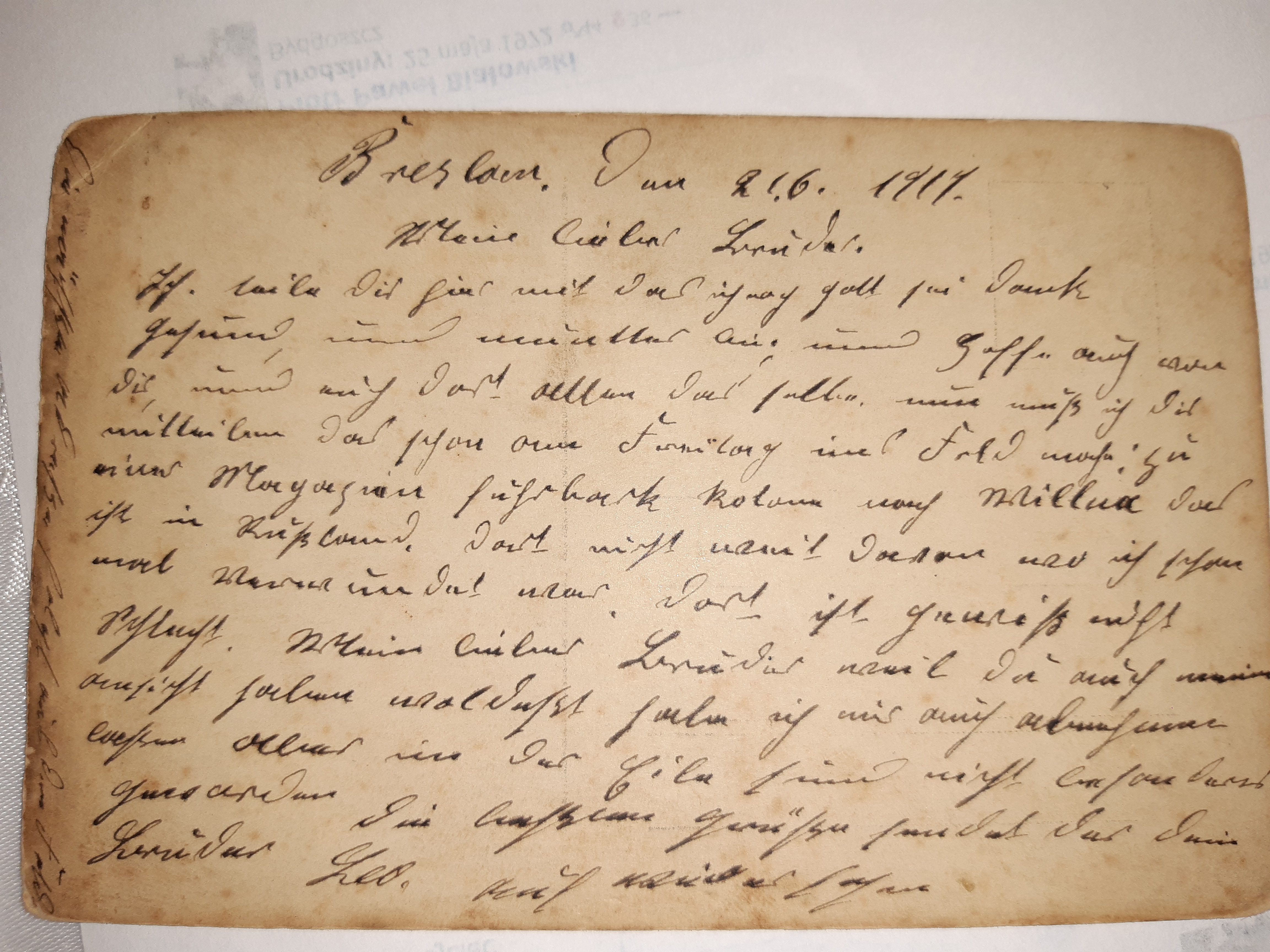 List do brata, napisany we Wrocławiu 21 czerwca 1917 r.: